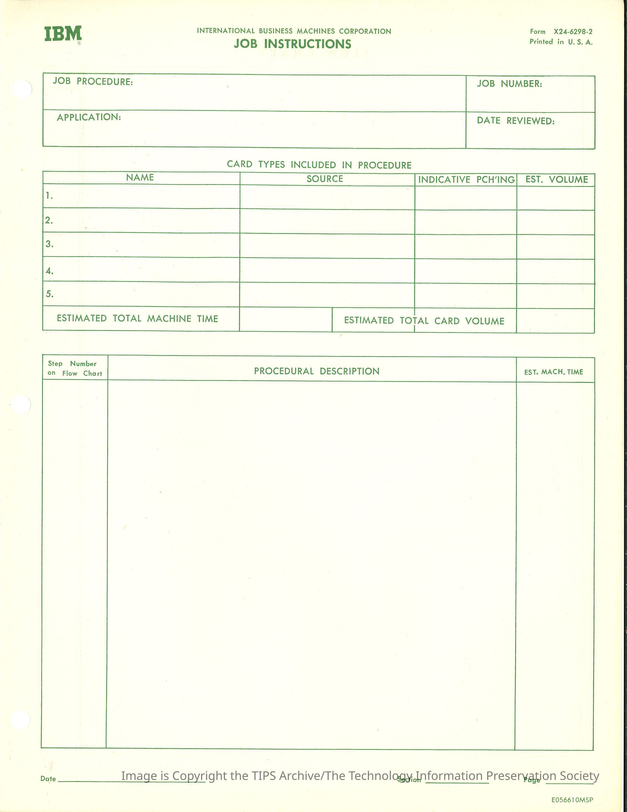 Job InstructionsEntry/Object ID