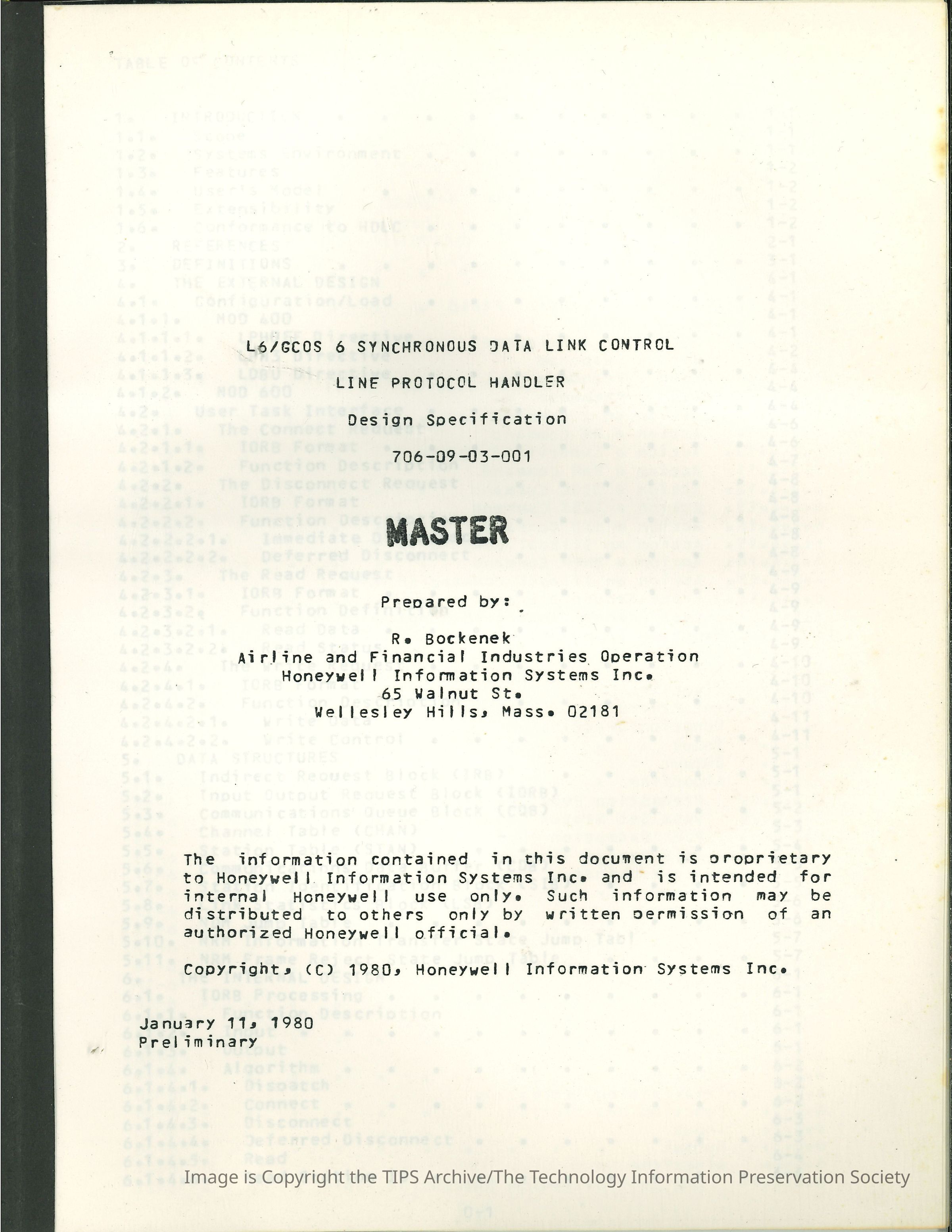 L6/GCOS 6 Synchronous Data Link Control Line Protocol Handler : Design Specification