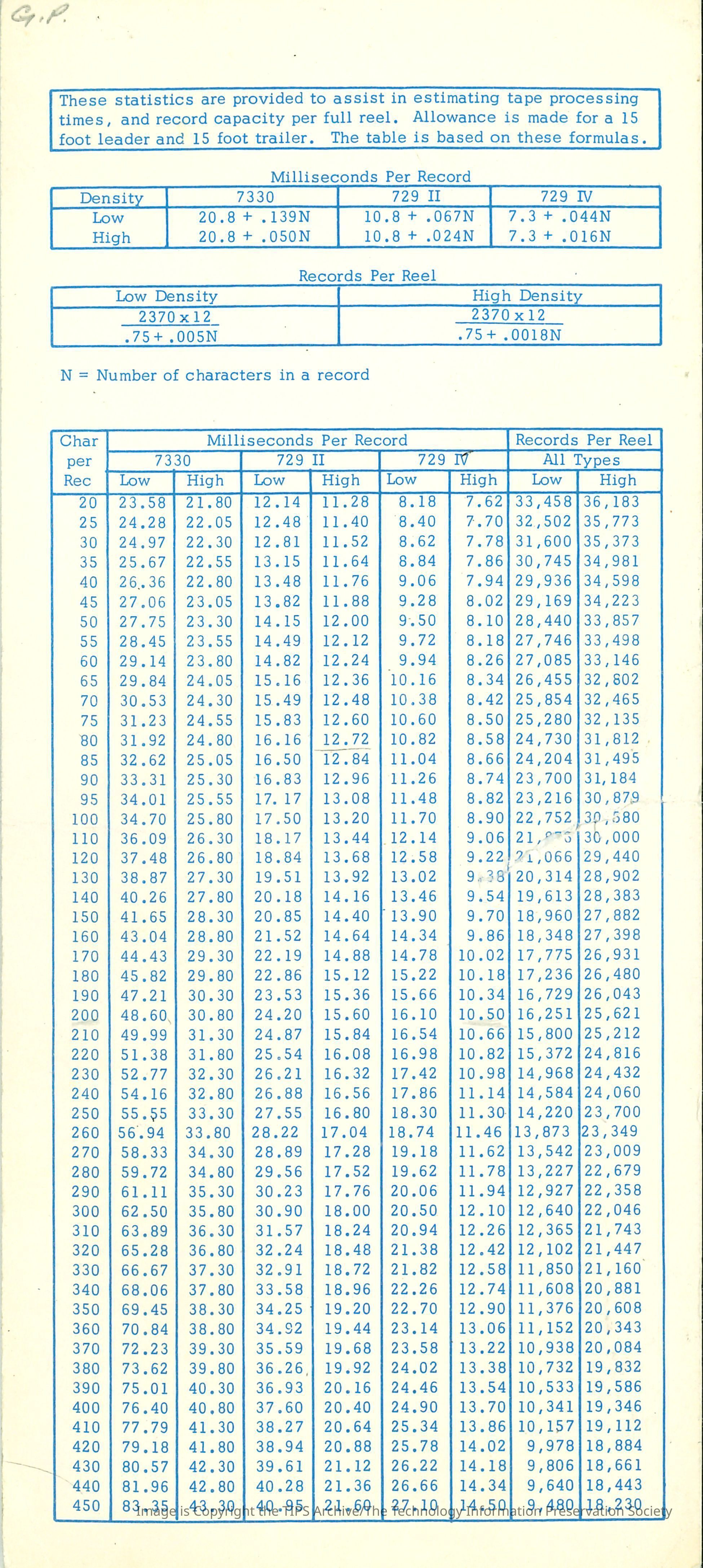 Magnetic Tape Record CharacteristicsEntry/Object ID