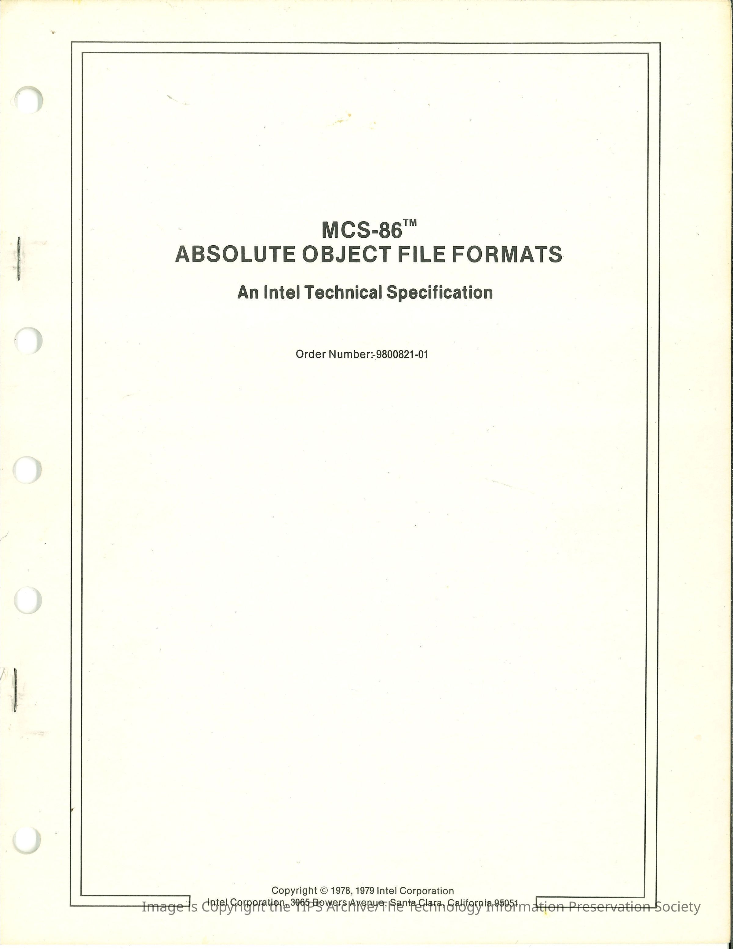 MCS-86 Absolute Object File Formats : An Intel Technical Specification