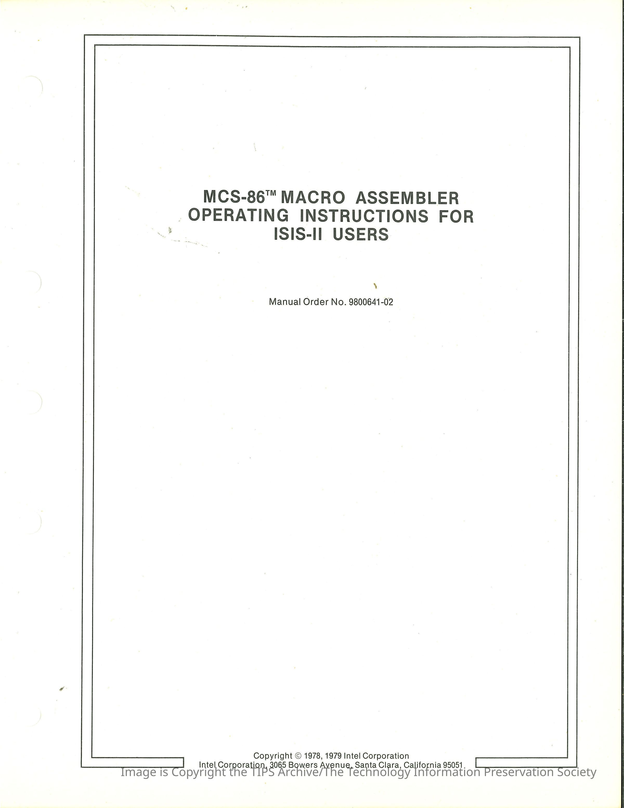 MCS-86 Macro Assembler Operating Instructions for ISIS-II Users