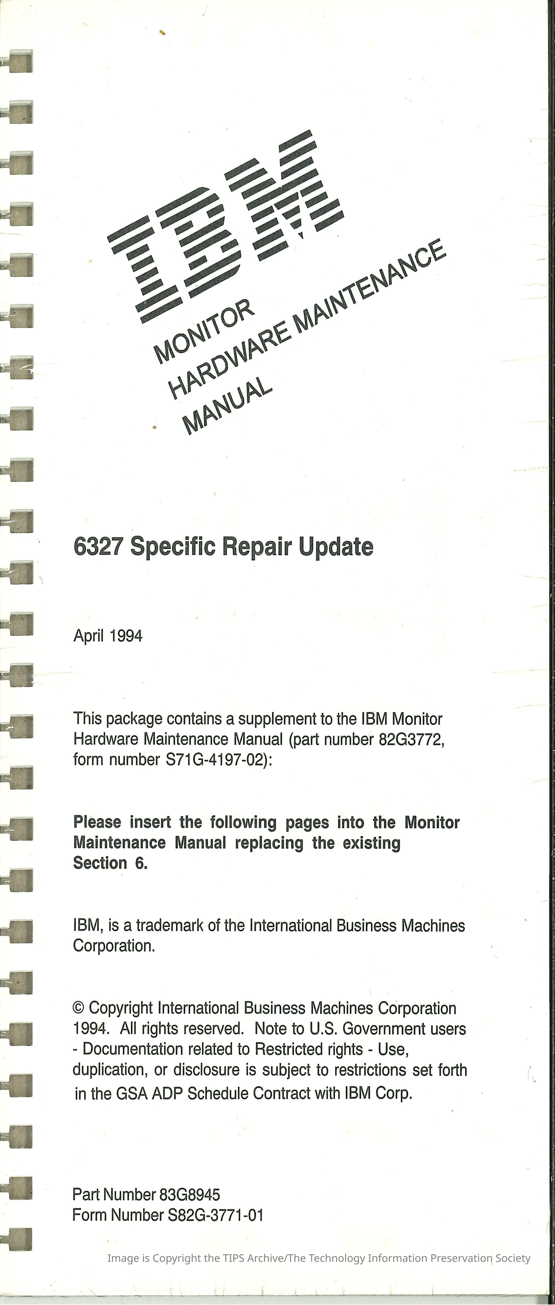 Monitor Hardware Maintenance Manual : 6327 Specific Repair Update