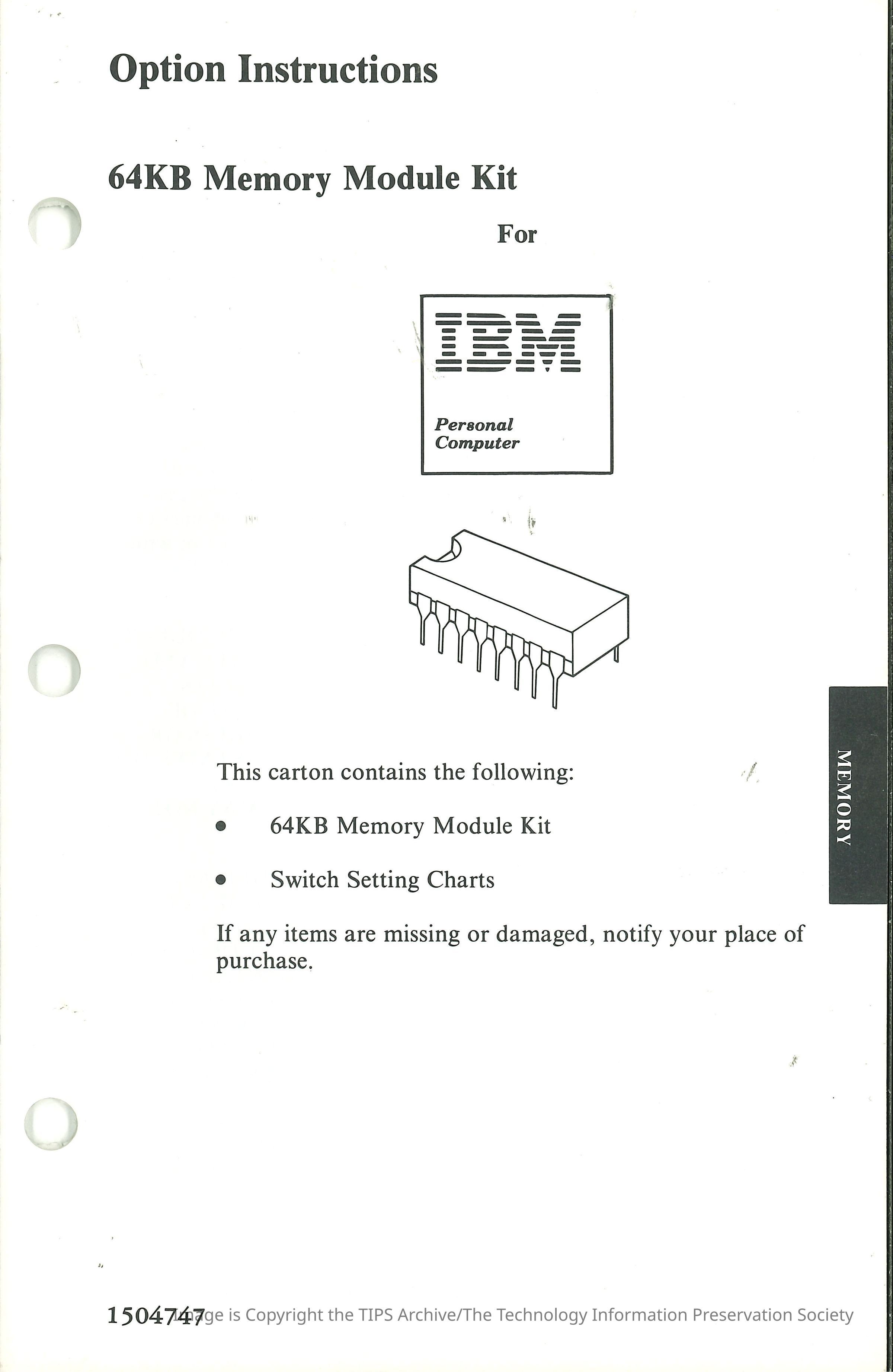 Option Instructions : 64KB Memory Module Kit