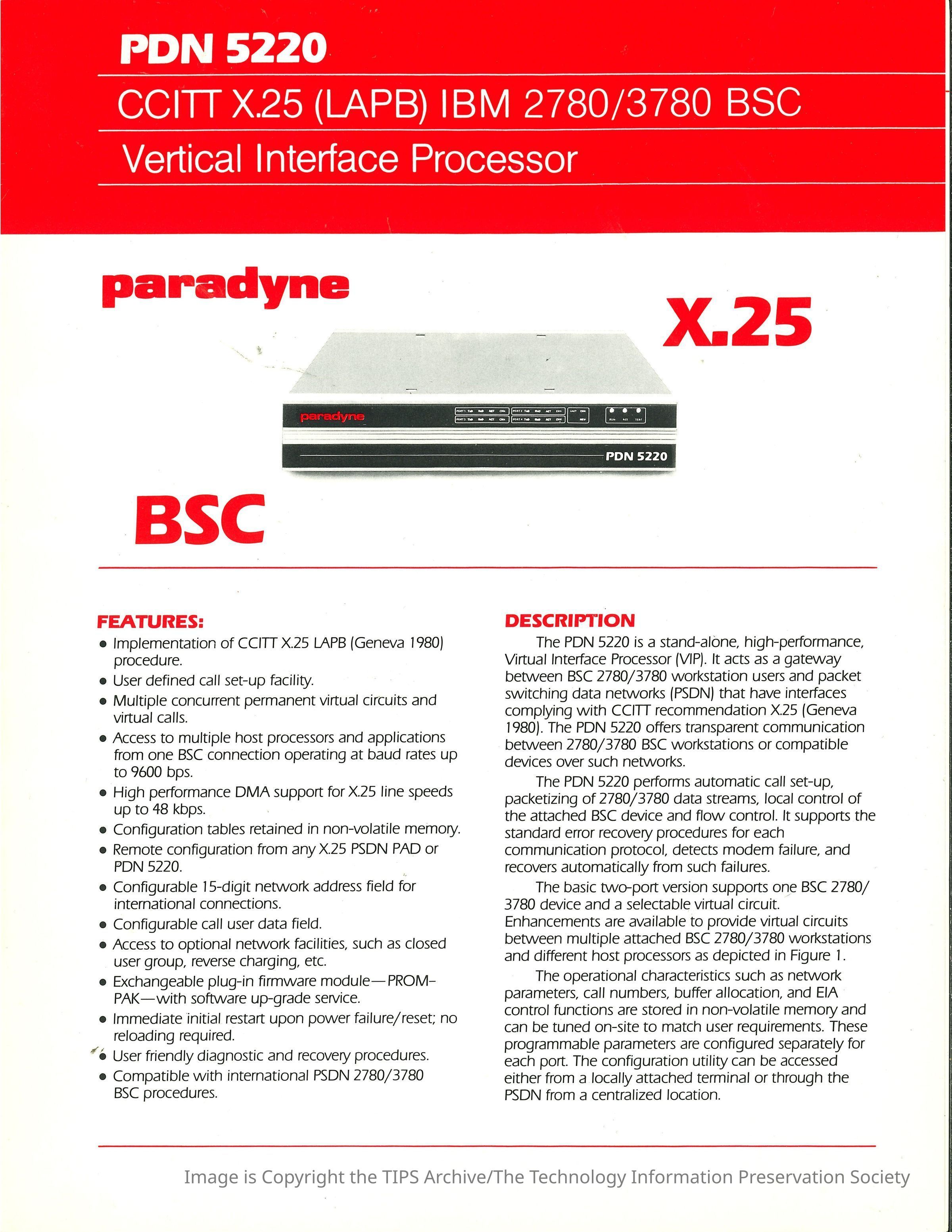 PDN 5220 : CCITT X.25 (LAPB) IBM 2780/3780 BSC Vertical Interface ProcessorEntry/Object ID
