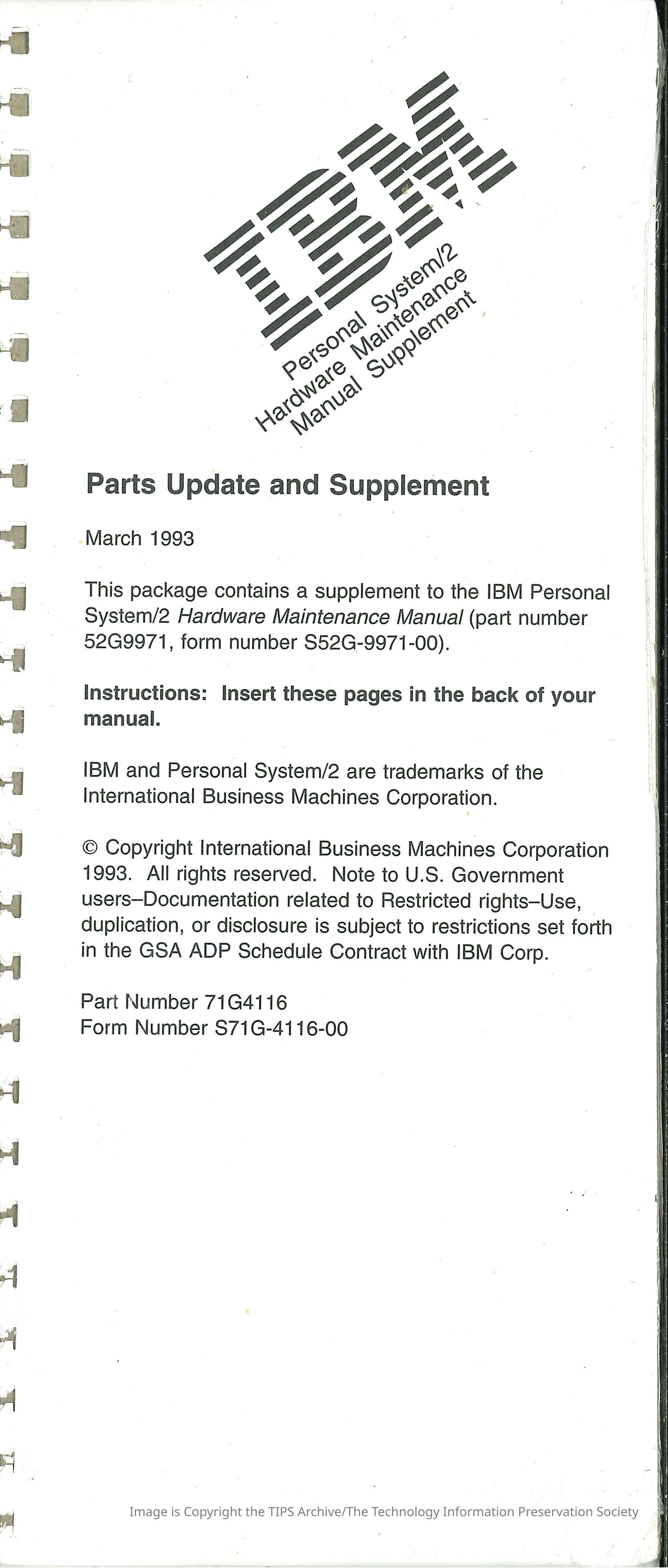 Personal System/2 Hardware Maintenance Manual Supplement : Parts Update and Supplement