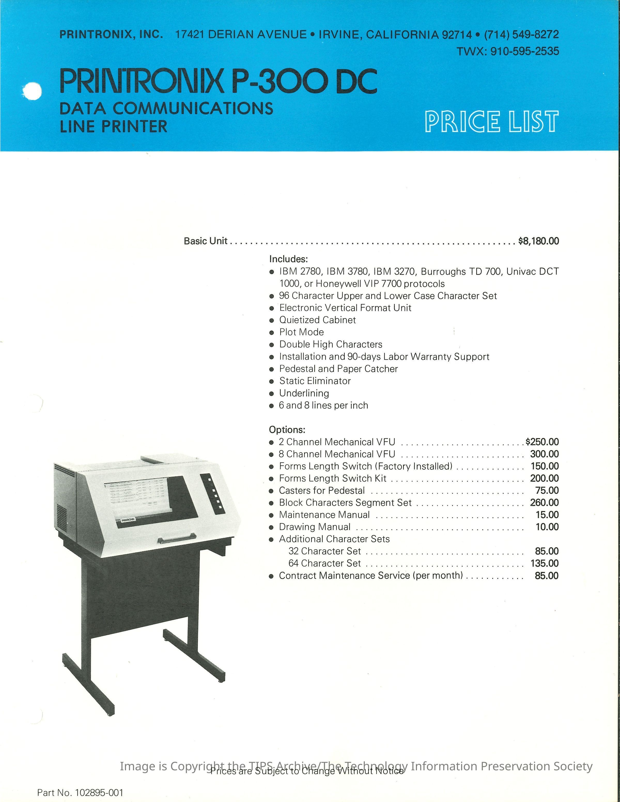 Printronix P-300 DC Data Communications Line PrinterEntry/Object ID
