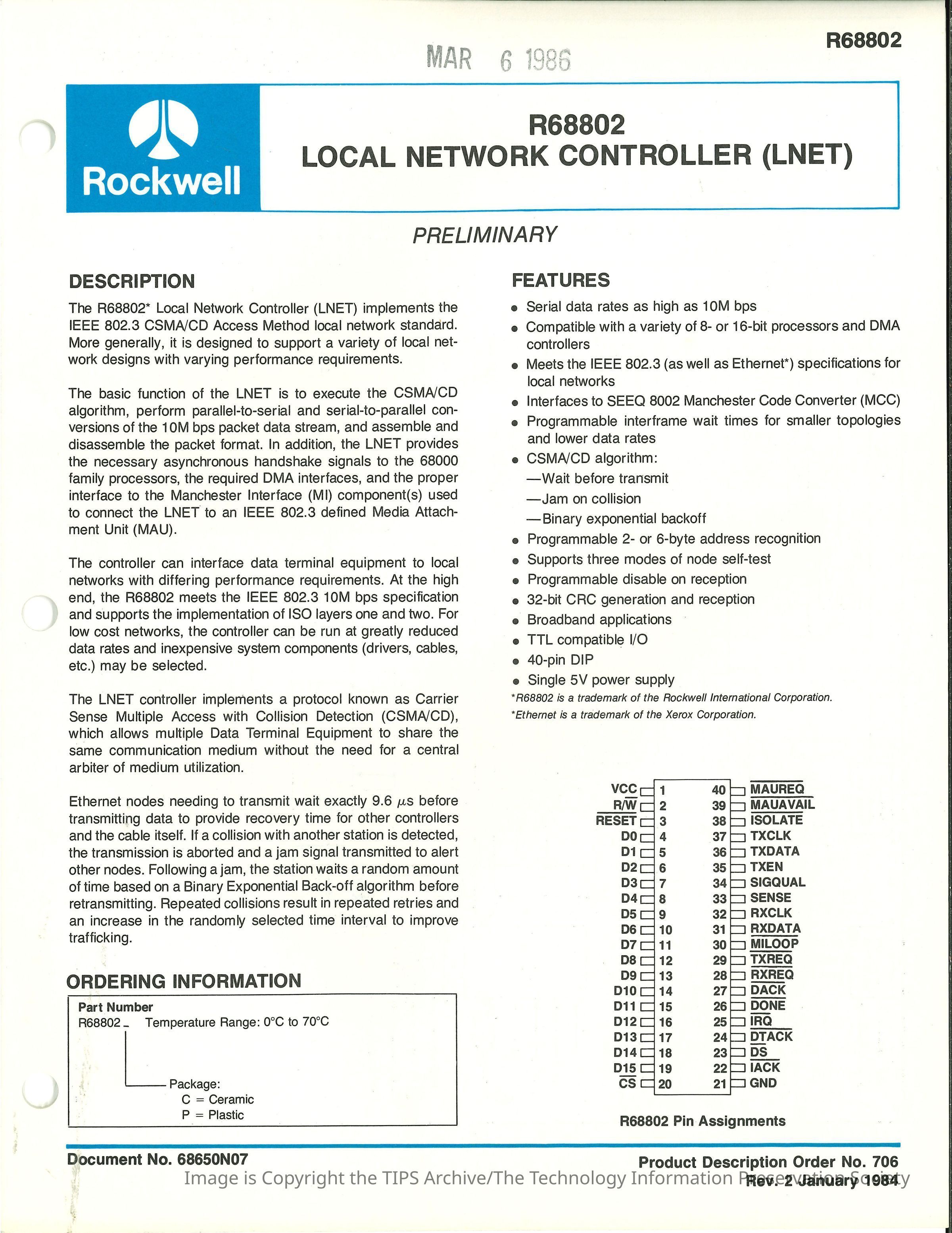 R68802 Local Network Controller (LNET)