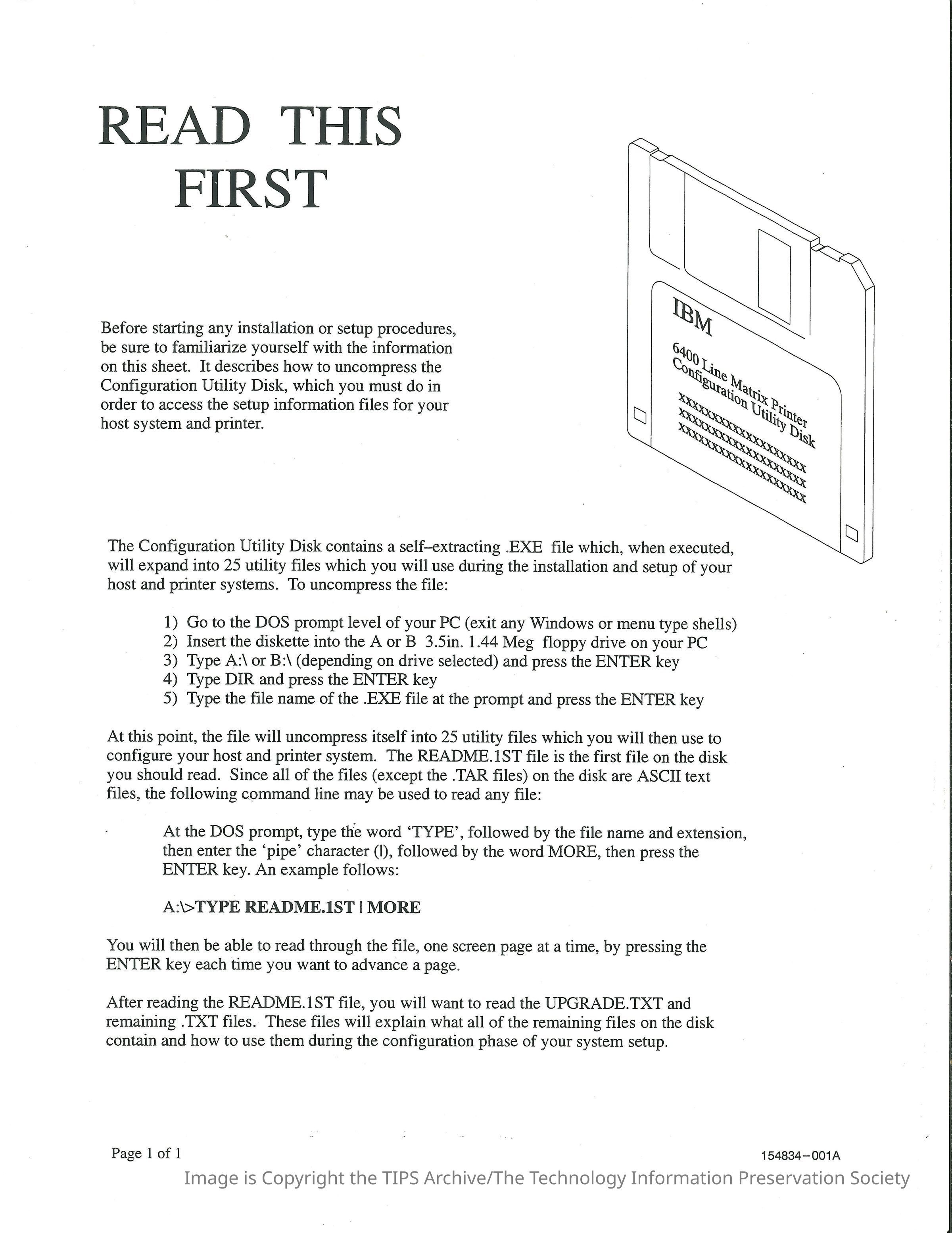 6400 Line Matrix Printer Configuration Utility DiskDescription