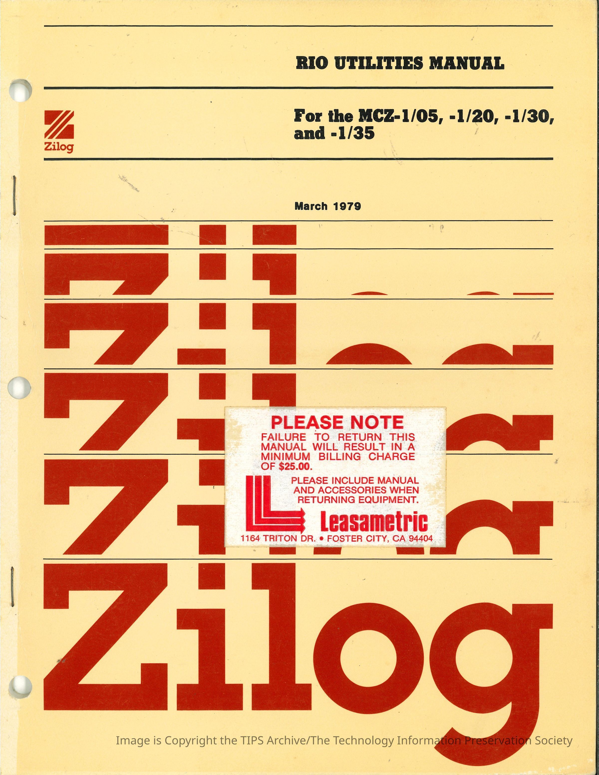 RIO Utilities Manual : For the MCZ-1/05, -1/20, -1/30, and -1/35Entry/Object ID