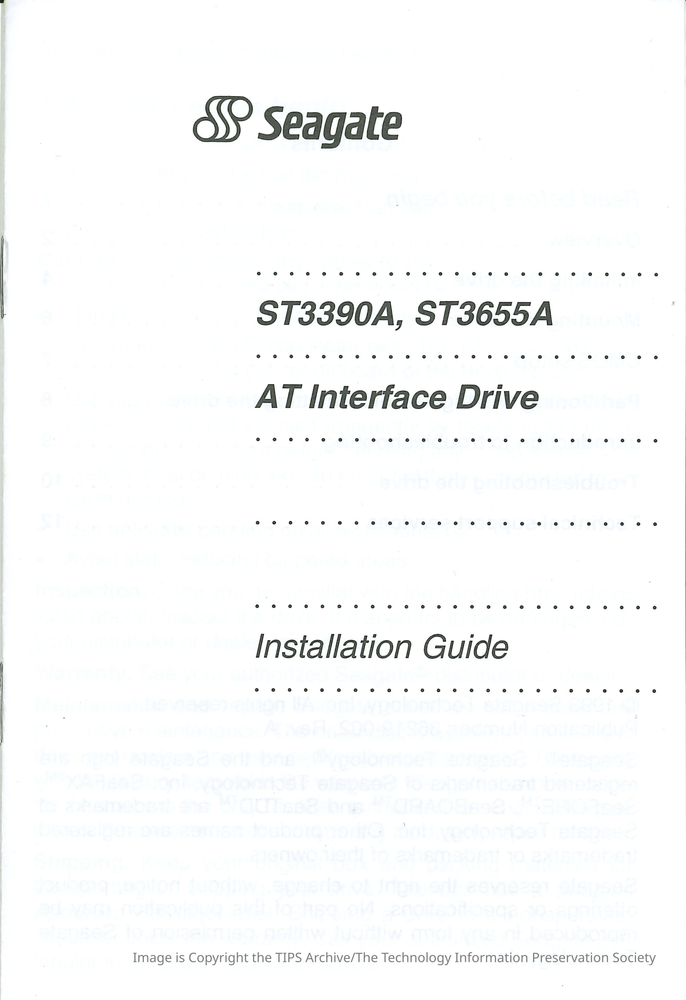 Seagate ST3390A, ST3655A AT Interface DriveEntry/Object ID