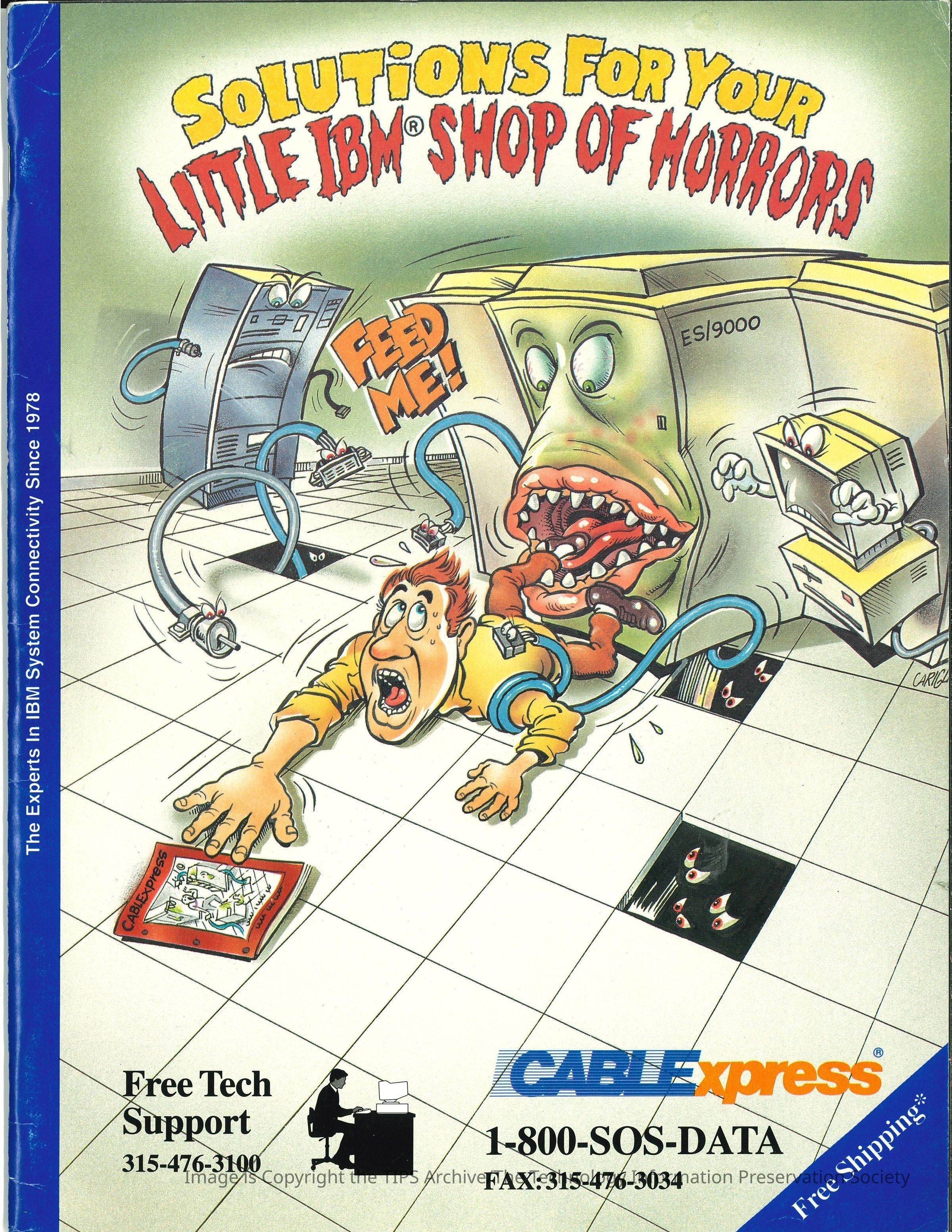 The theme of this catalog is based on the popular 1982 Off-Broadway musical "Little Shop of Horrors." It features products intended to be compatible with IBM computers, terminals and connectivity solutions, from multiple 3rd-party manufacturers.Category