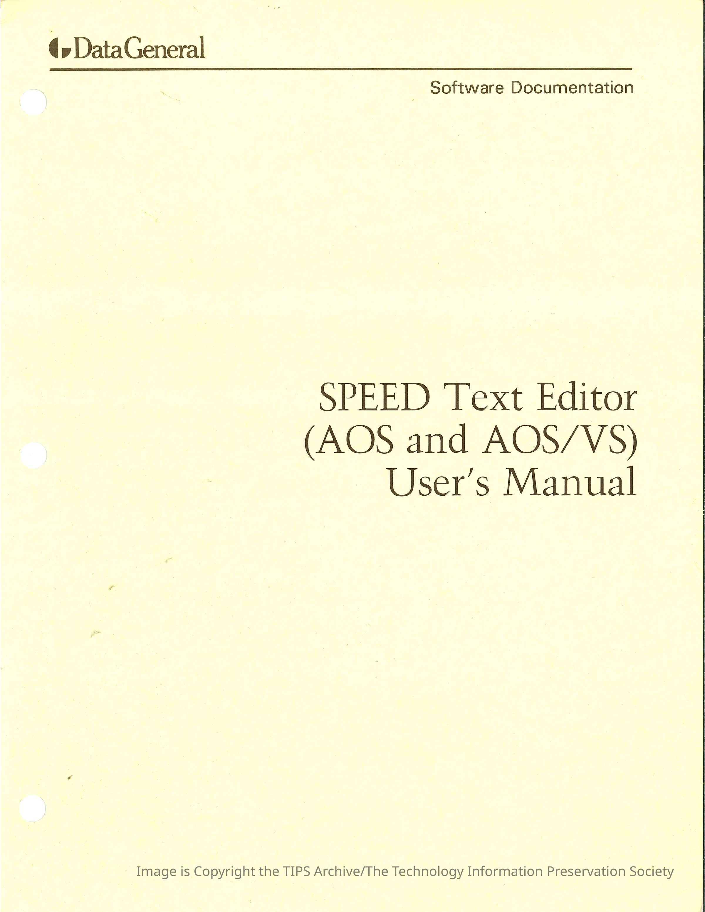 SPEED Text Editor (AOS and AOS/VS) User's Manual