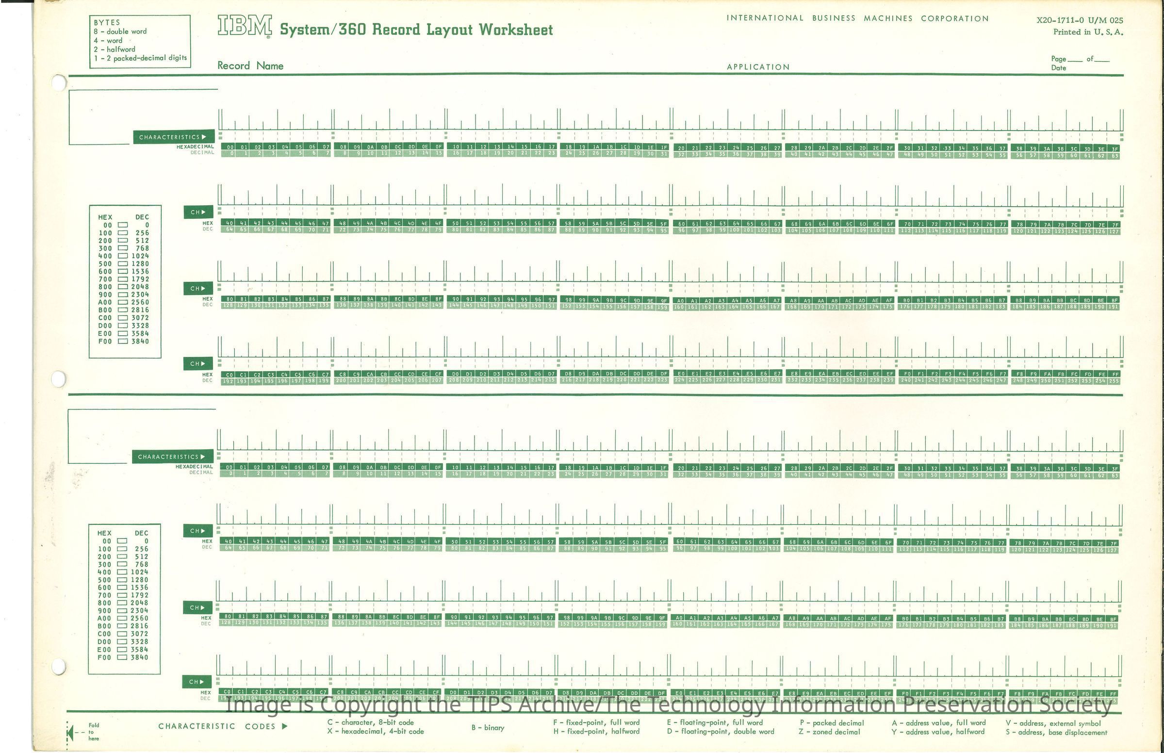 System/360 Record Layout Worksheet