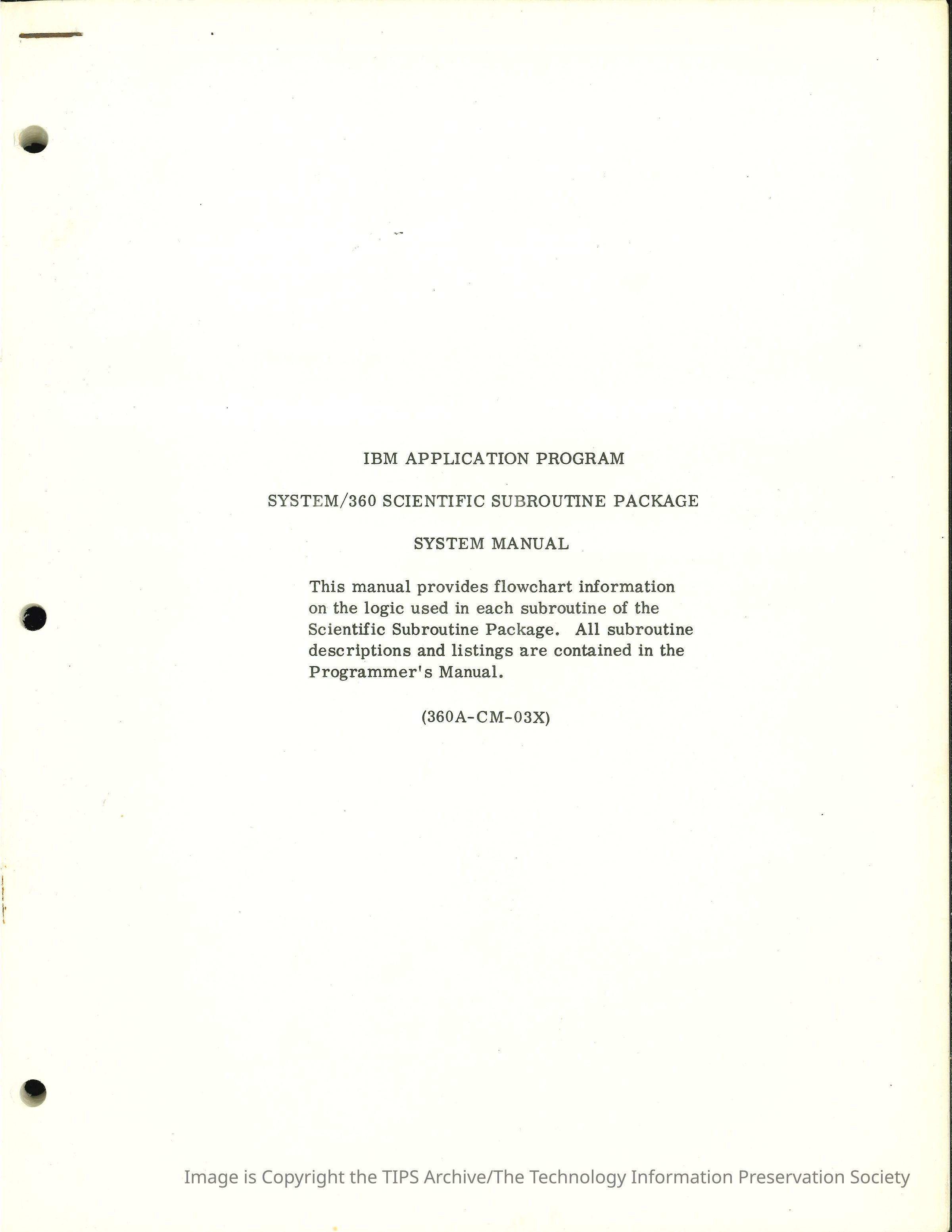System/360 Scientific Subroutine PackageEntry/Object ID