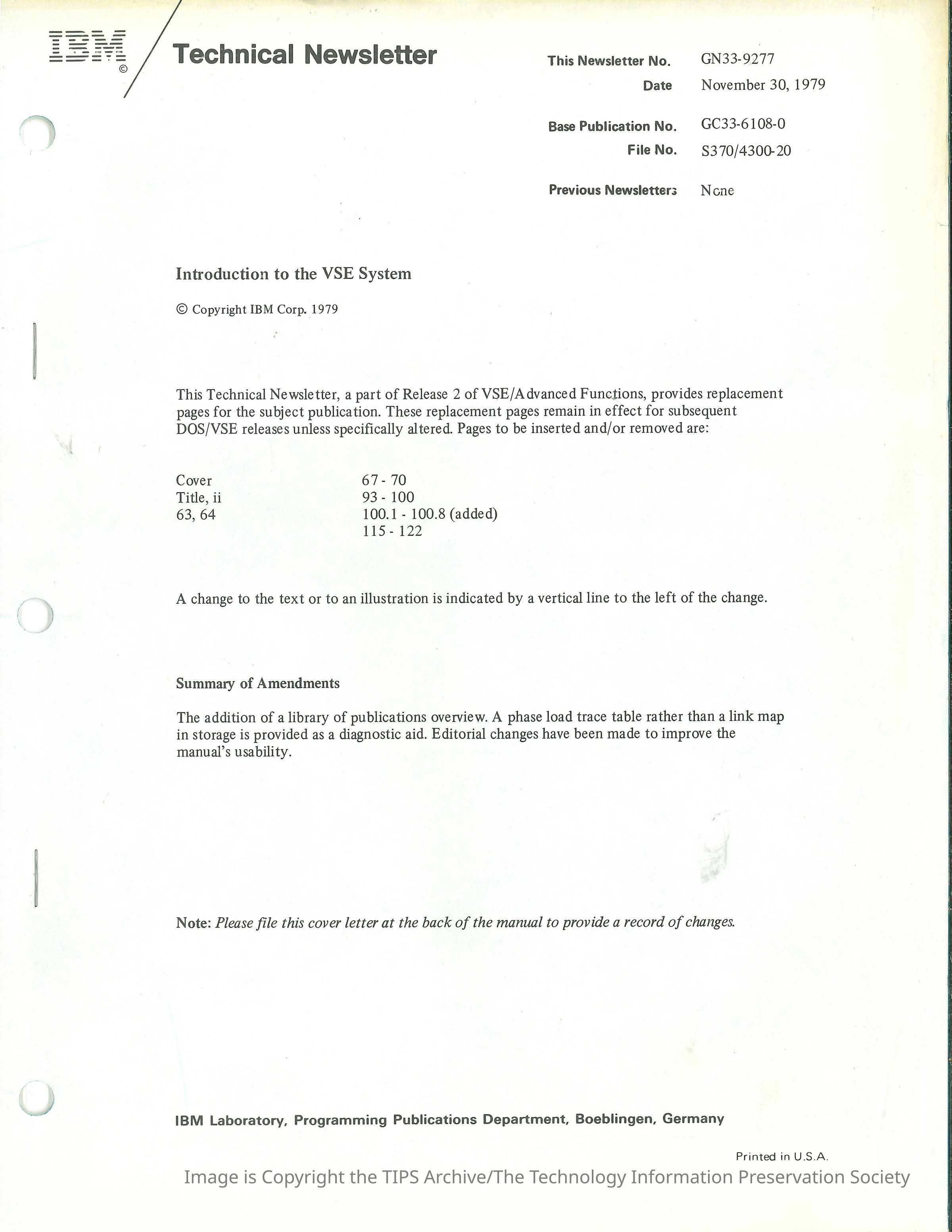 This Technical Newsletter, a part of Release 2 of VSE/Advanced Functions, provides replacement pages for the subject publication.Category