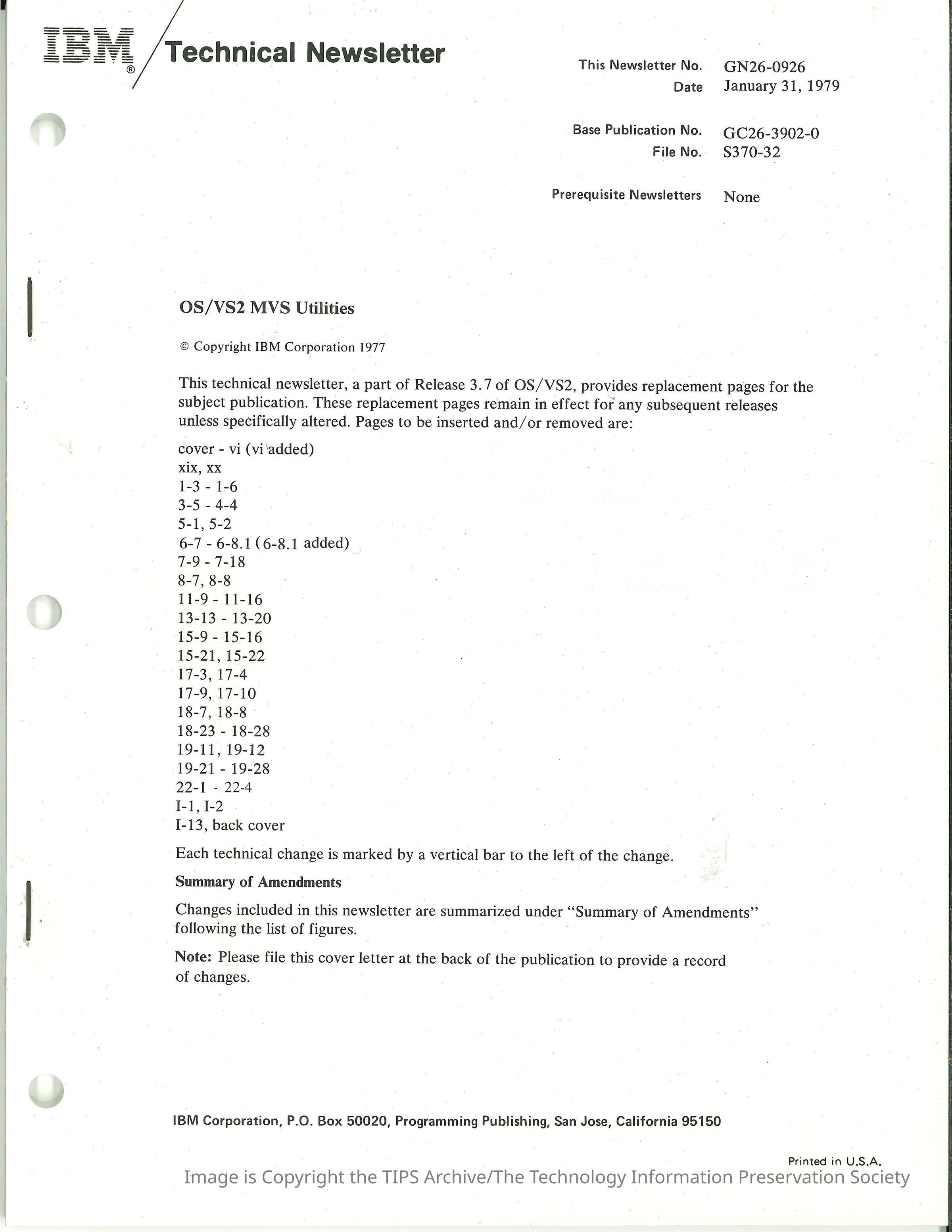 This technical newsletter, a part of Release 3.7 of OS/VS2, provides replacement pages for the subject publication.Category