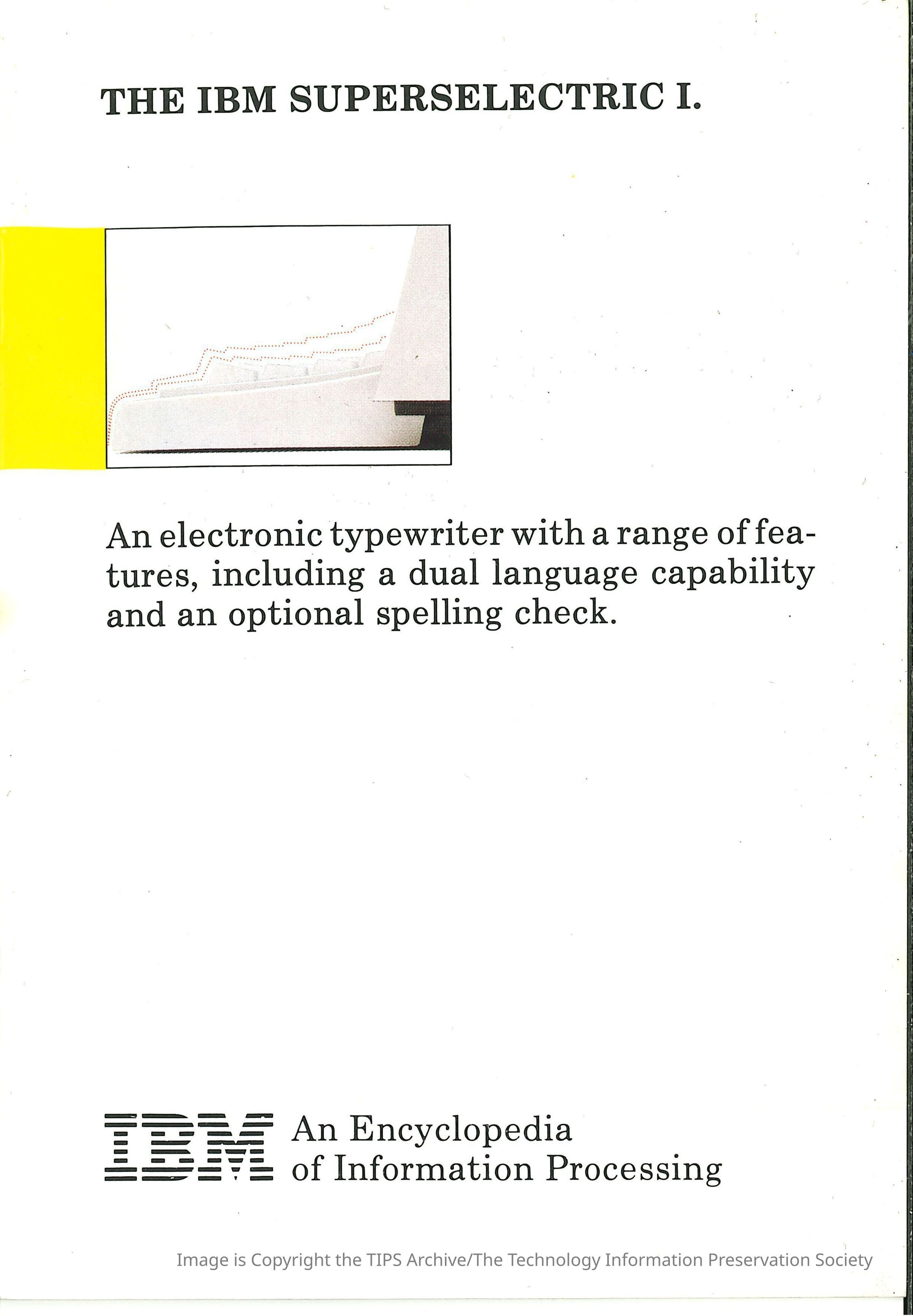 An electronic typewriter with a range of features, including a dual language capability and an optional spelling check.Category