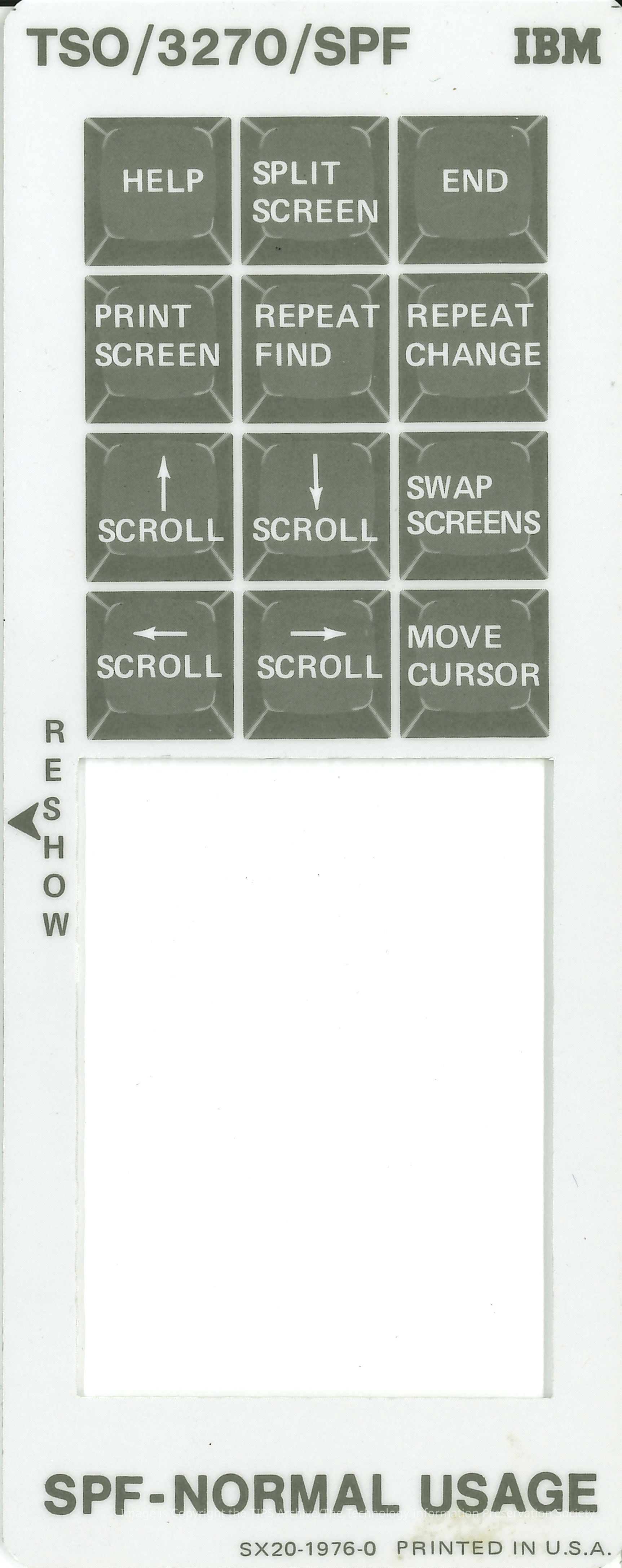TSO/3270/SPF Keyboard OverlayEntry/Object ID