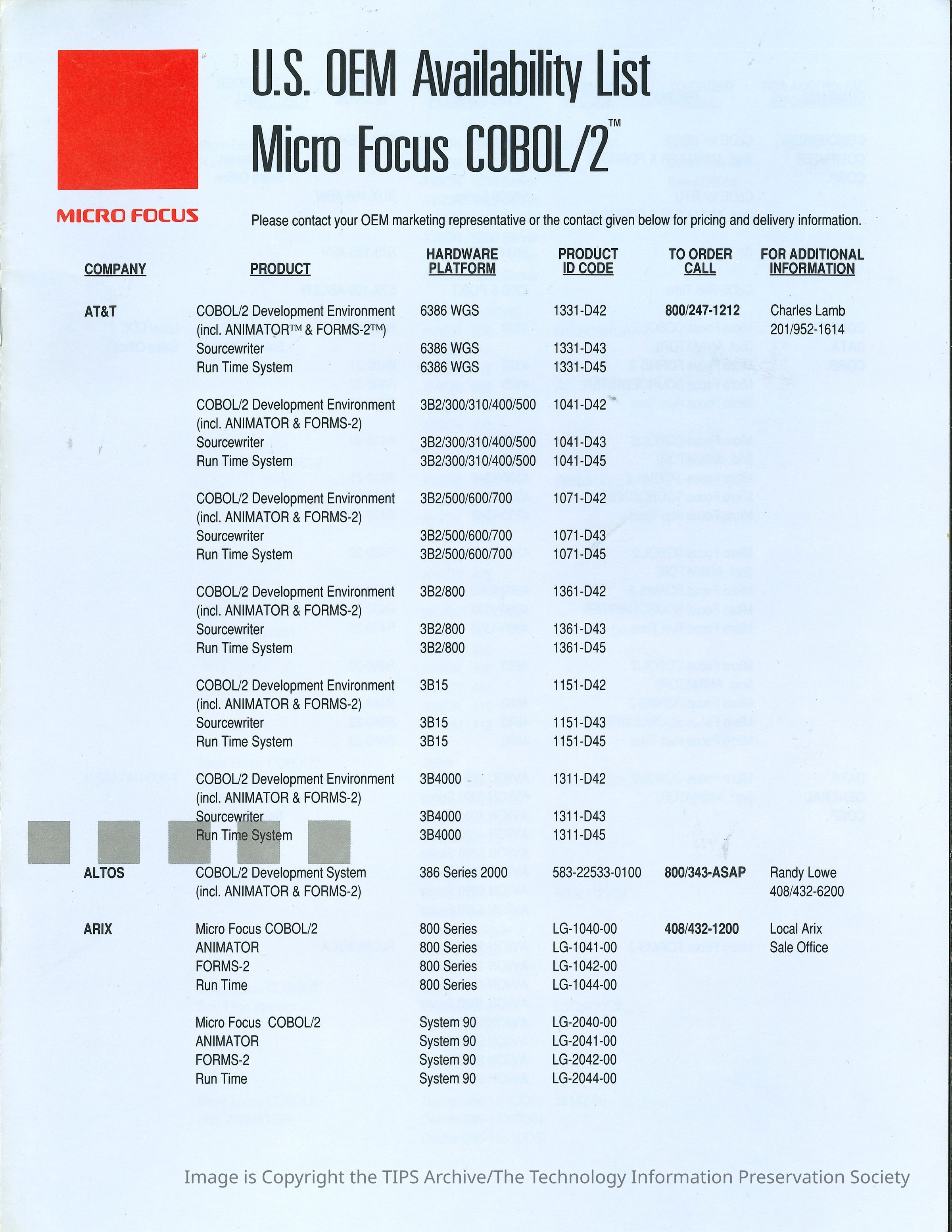 U.S. OEM Availability List