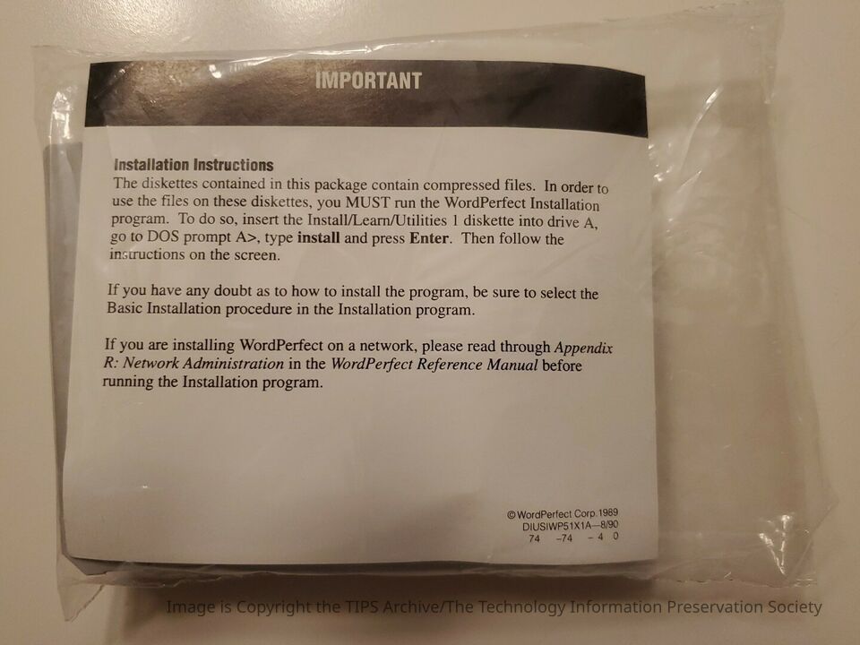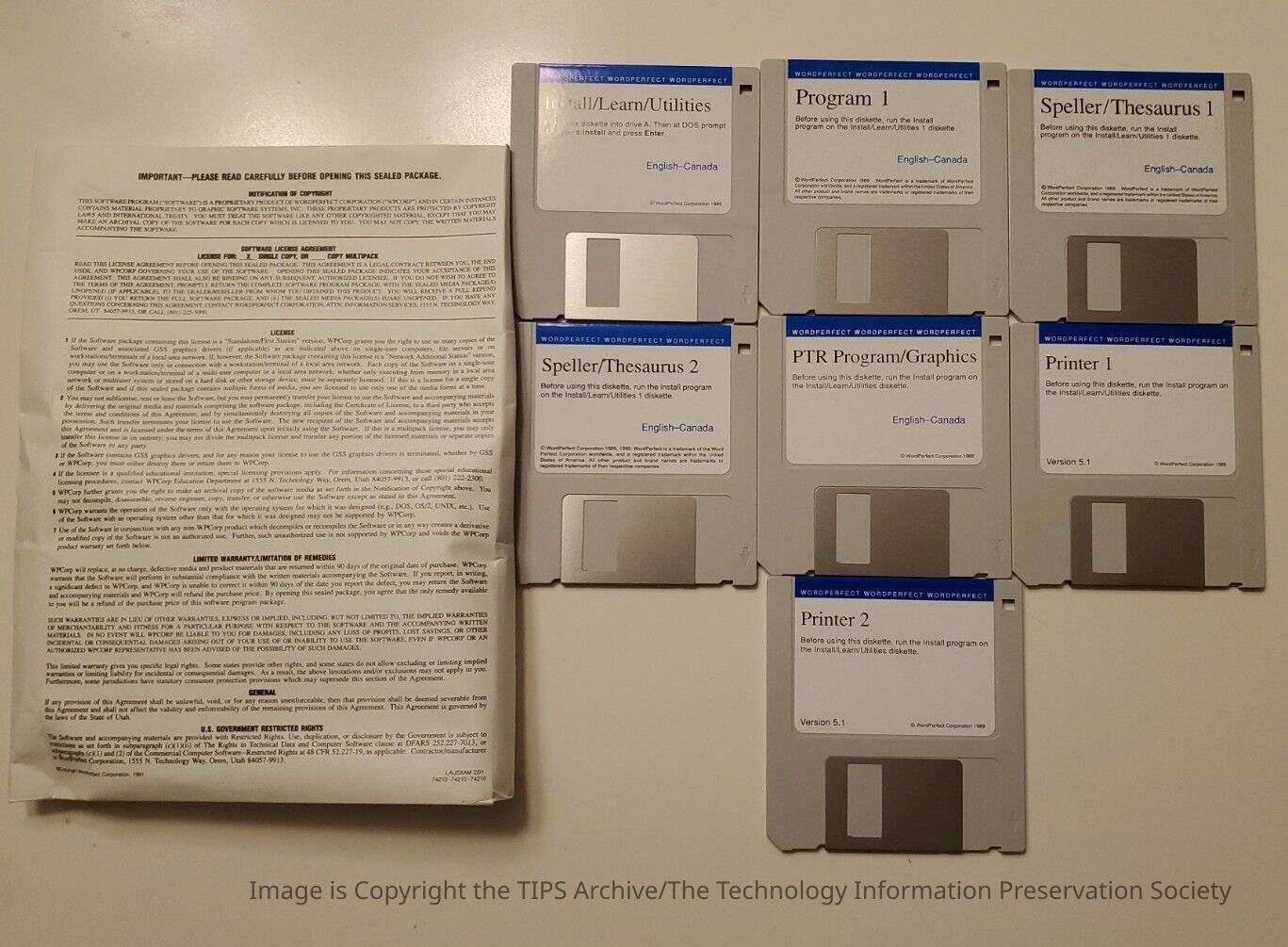 Set of 7 install disks for WordPerfect version 5.1 for MS/PC-DOS and 100% CompatiblesCategory