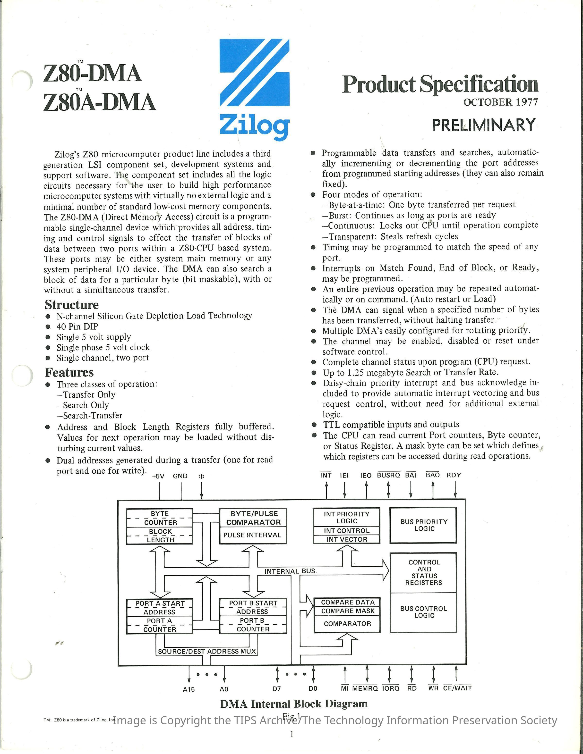 Z80-DMA Z80A-DMA : Product Specification