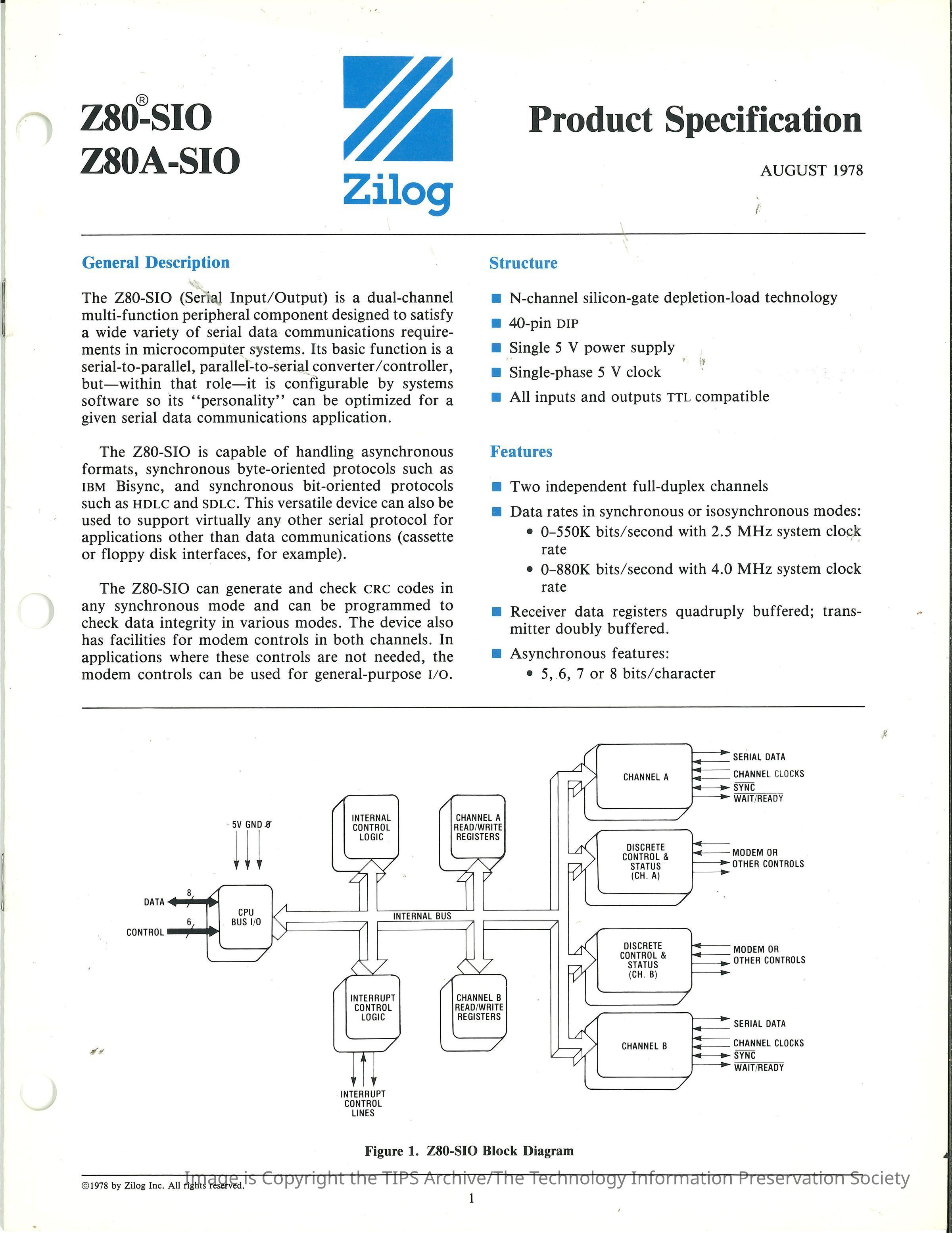 Z80-SIO Z80A-SIO : Product Specification