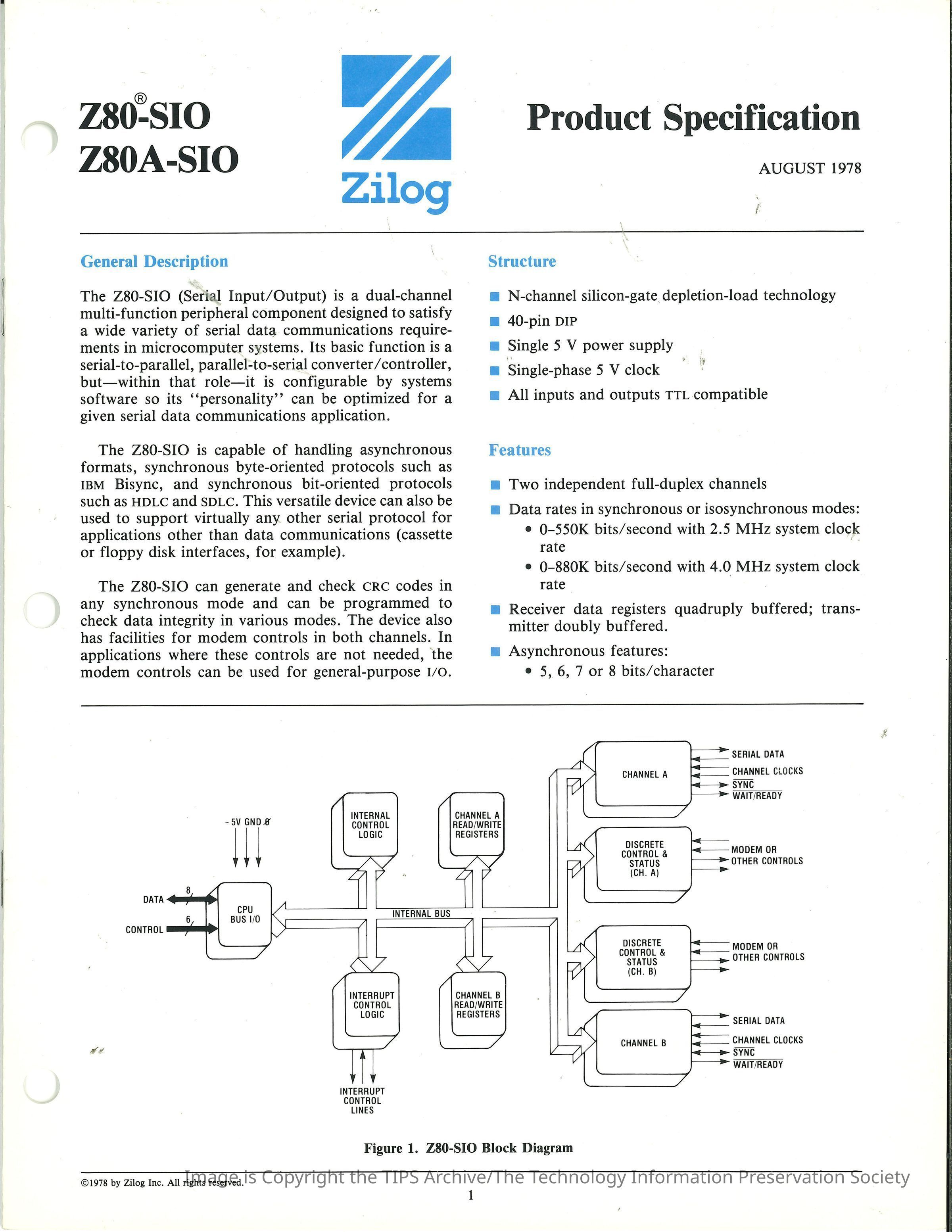 Z80-SIO Z80A-SIO : Product Specification