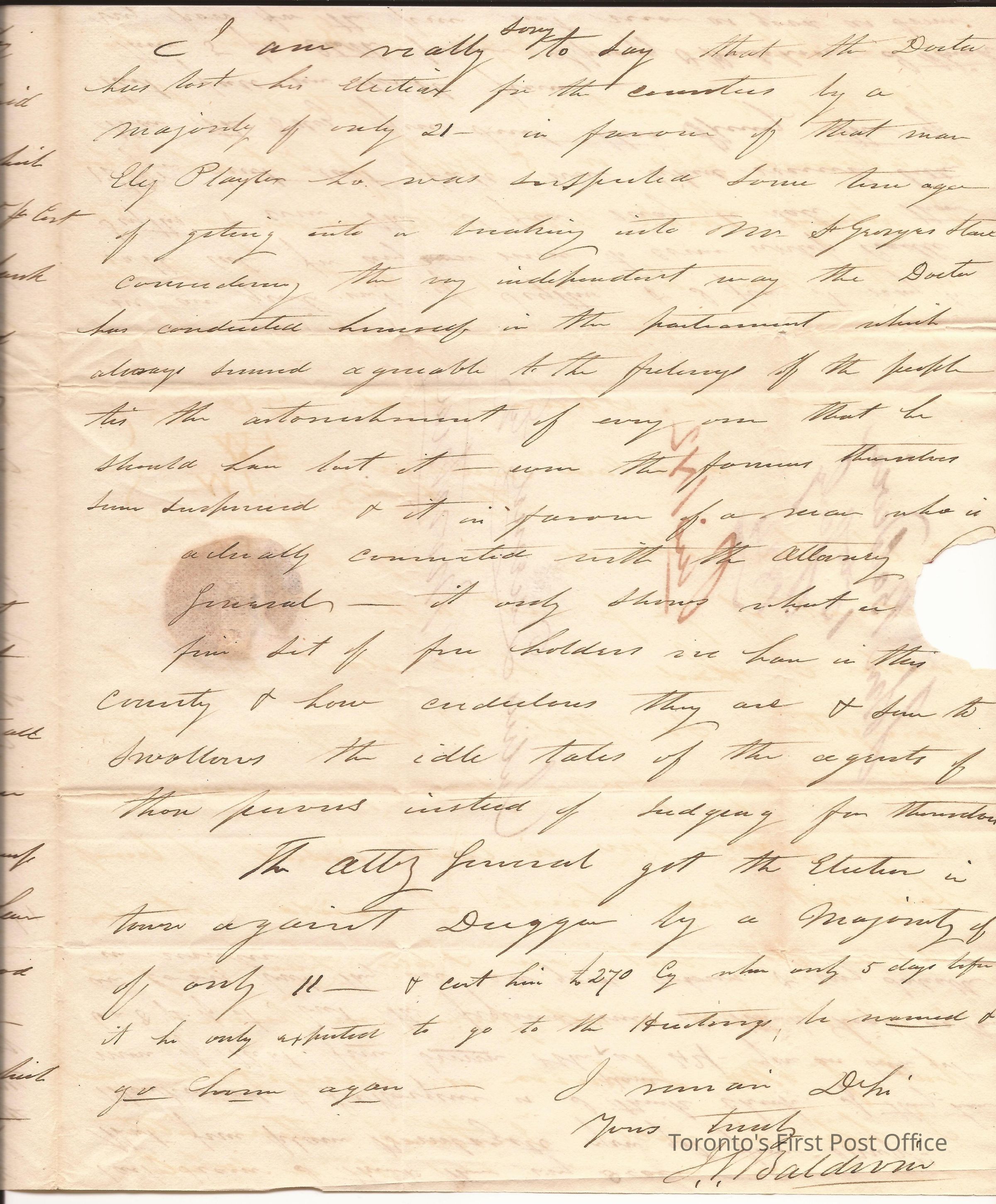 Letter from John S. Baldwin, York; Julius H. Quesnel, Montreal; 15 July 1824; postmarks: "Paid 1H2"; red wax seal; re: reference to an explanatory note of merchandise items; some words about election.Update Date