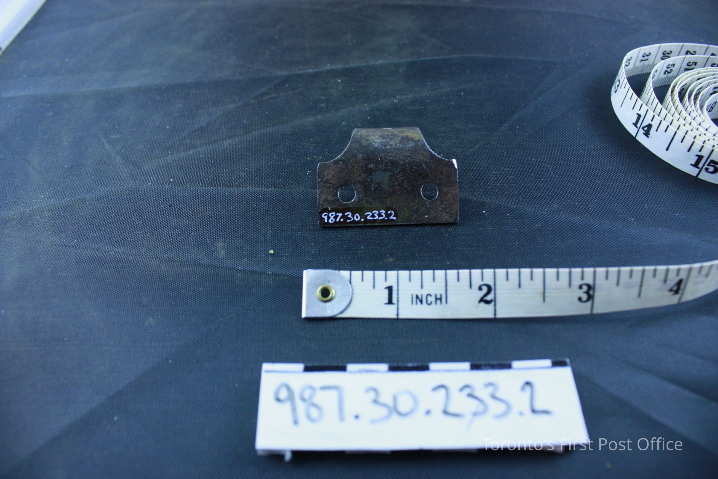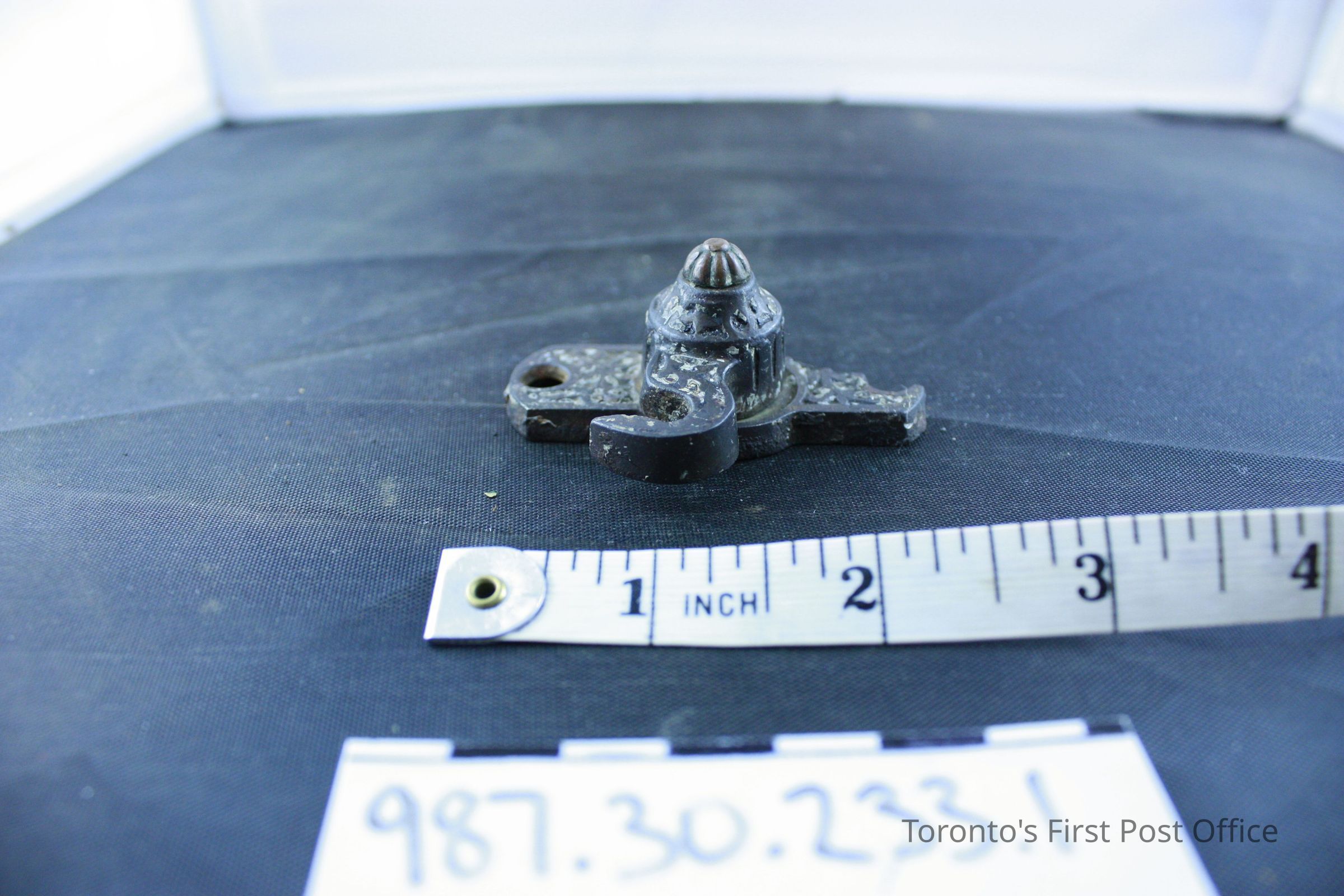 Window lock; cast iron; pivotal hinge; circa 1851.Dimensions