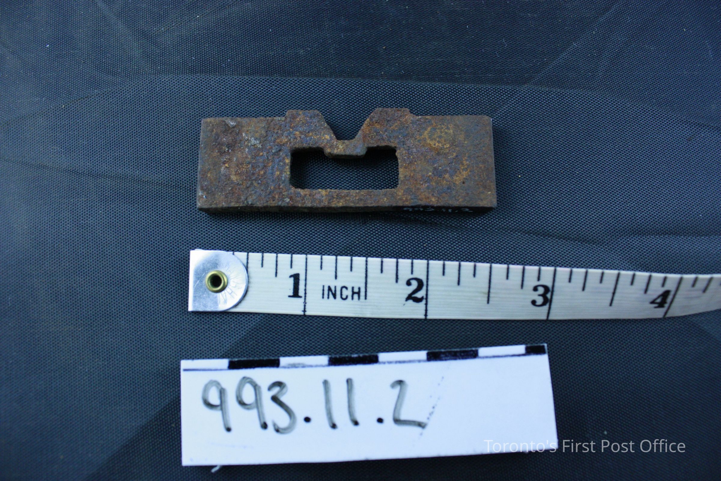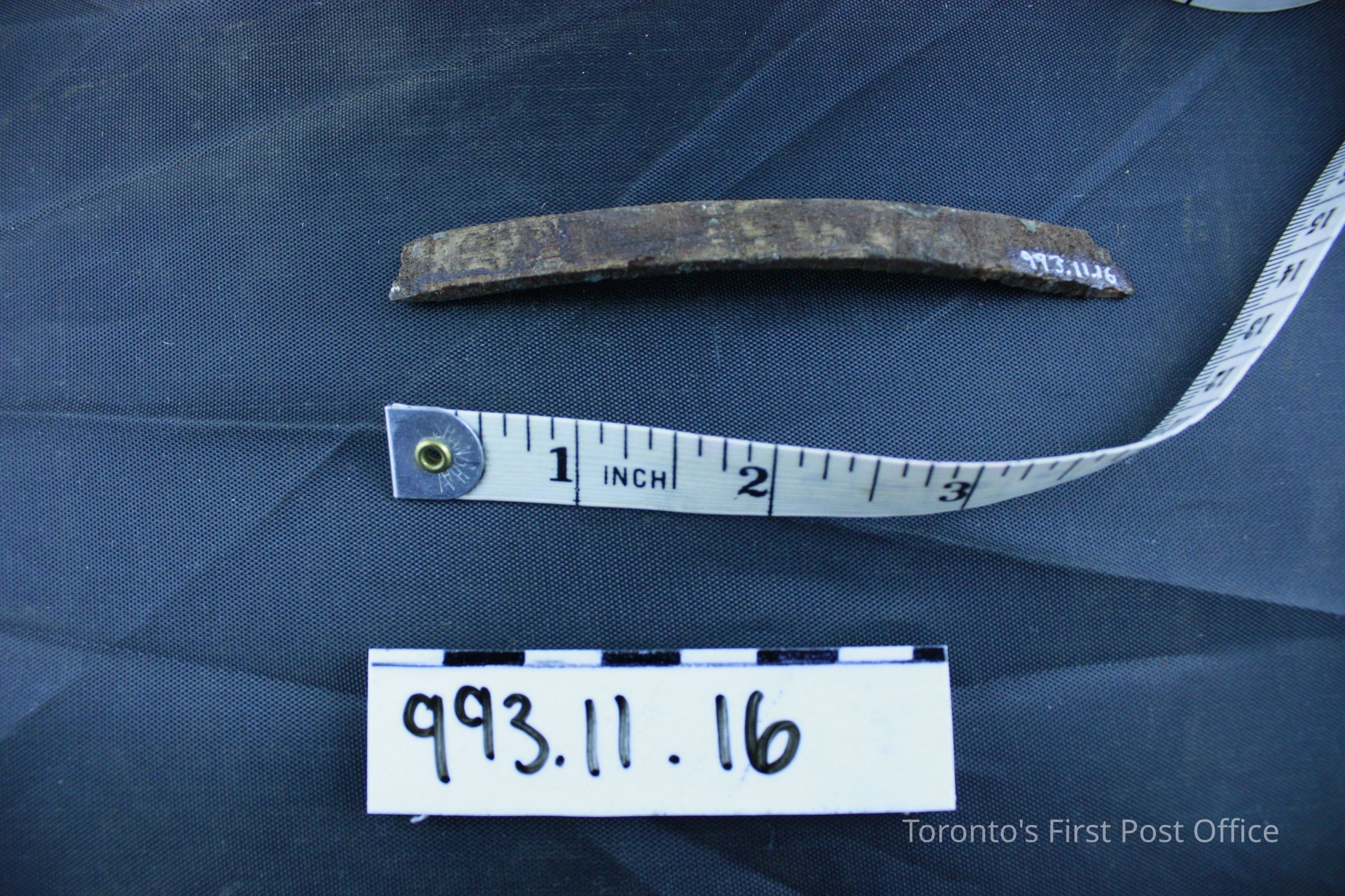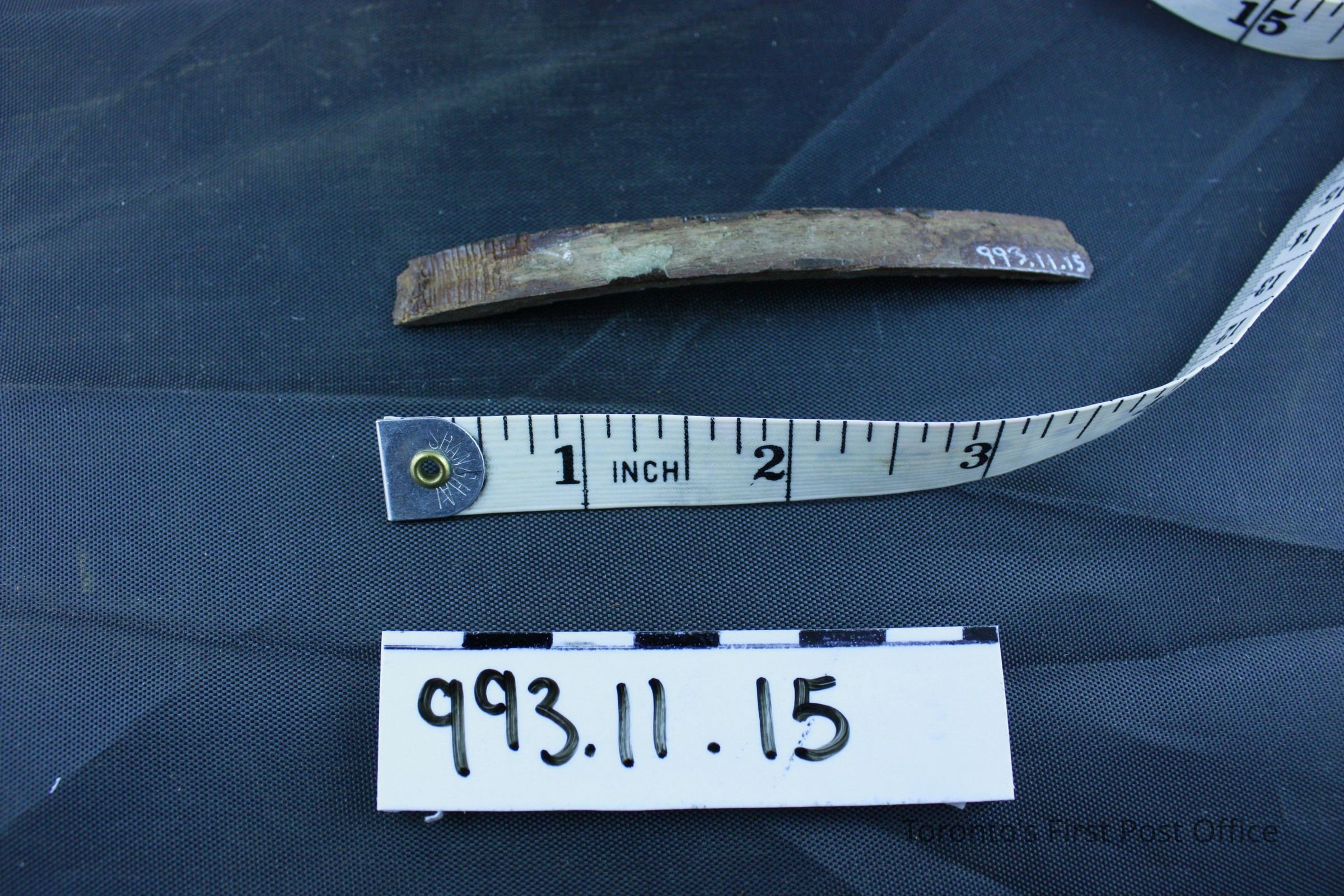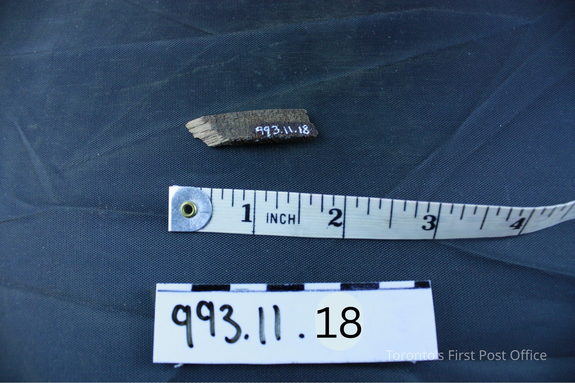 Twenty assorted pieces such as tack, nail, part of metal lock, wood, glass; "found in desk".