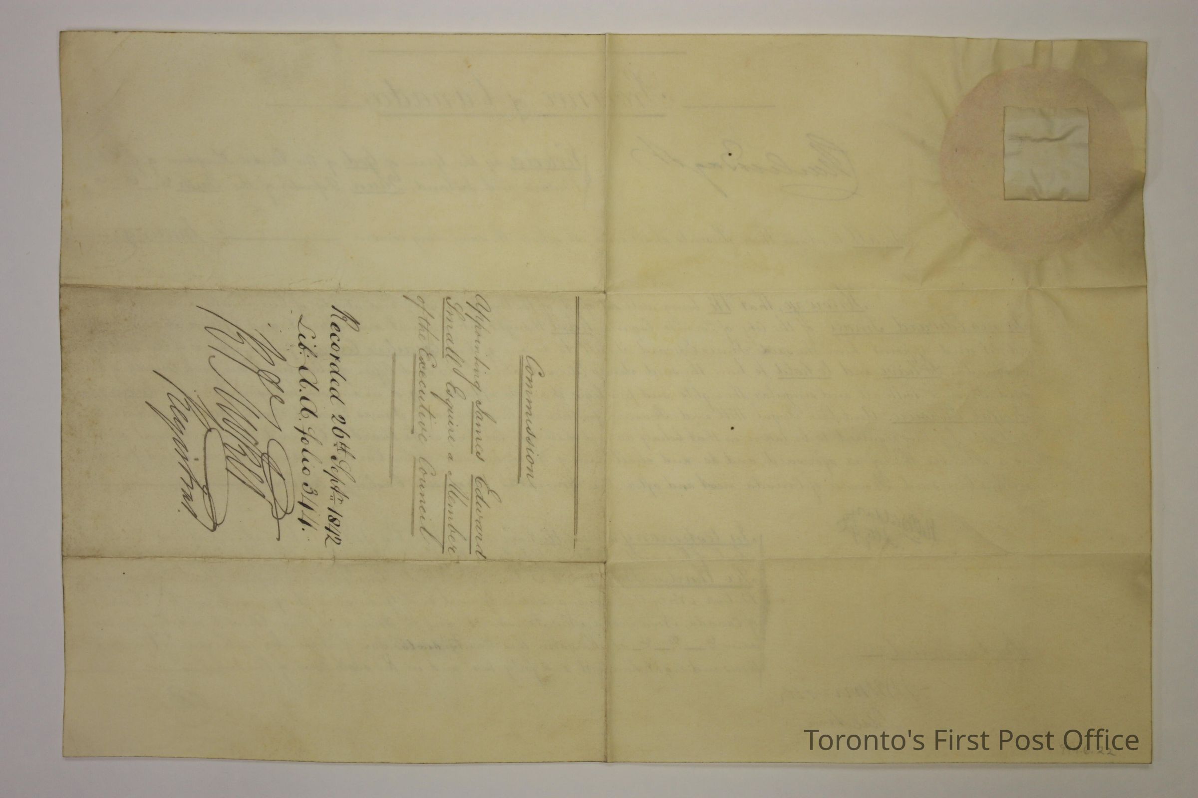 Commission appointing James Edward Small, Esq. a member of the Executive Council; dated 26 Sept 1842; signed R.A. Tucker, Registrar; written by W. Harrison, Secretary; signed by Charles Bagot; black ink manuscript; "Province of Canada" wafer seal at top right; parchment.Update Date