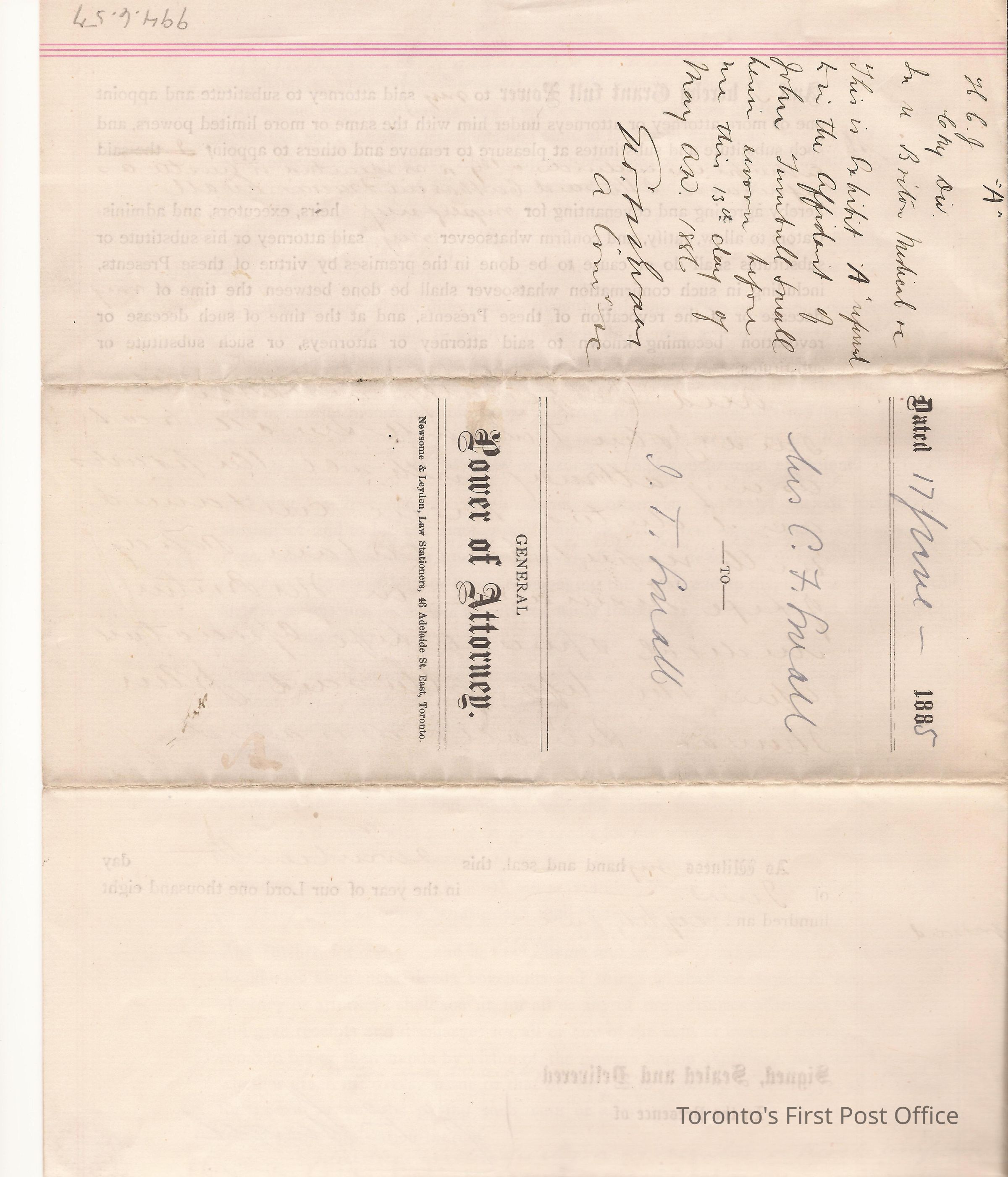Document; re: C.F. Small is naming John Turnbull Small as her attorney and executor of her husband's John Thomas Small's will and testament; signed by C.F. Small, Sidney Small; small red, paper seal attached.Dimensions