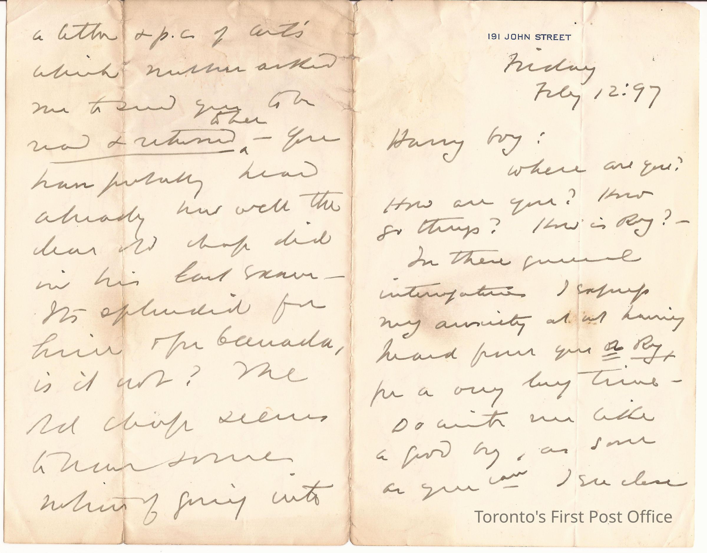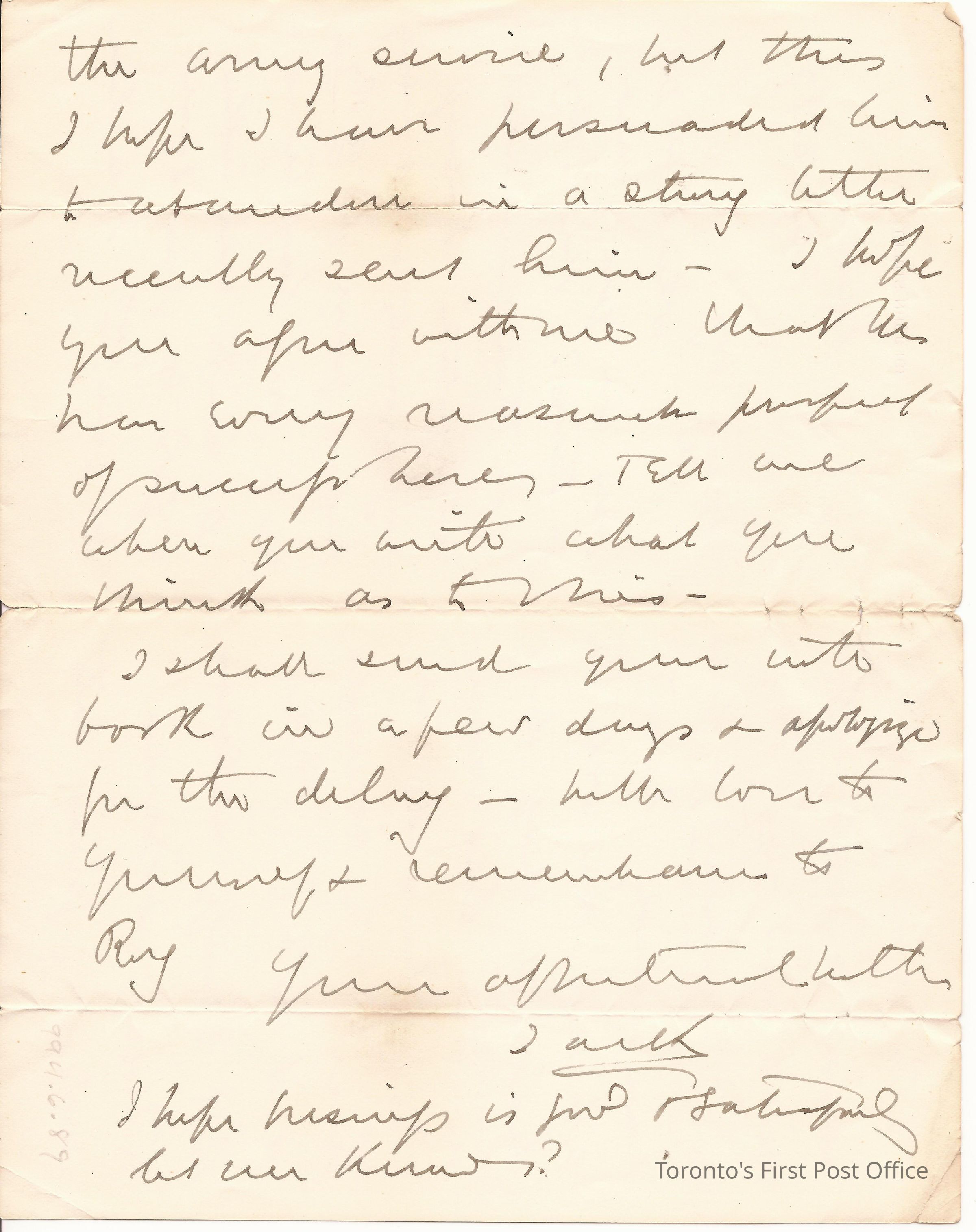 Letter; to Harry boy; from Jack; black ink; watermark: "ROYAL IRISH LINEN MARCUS WARD & CO"; re: personal, family matter and brother's desire to go into the army, suggests brother should stick to medicine.Dimensions