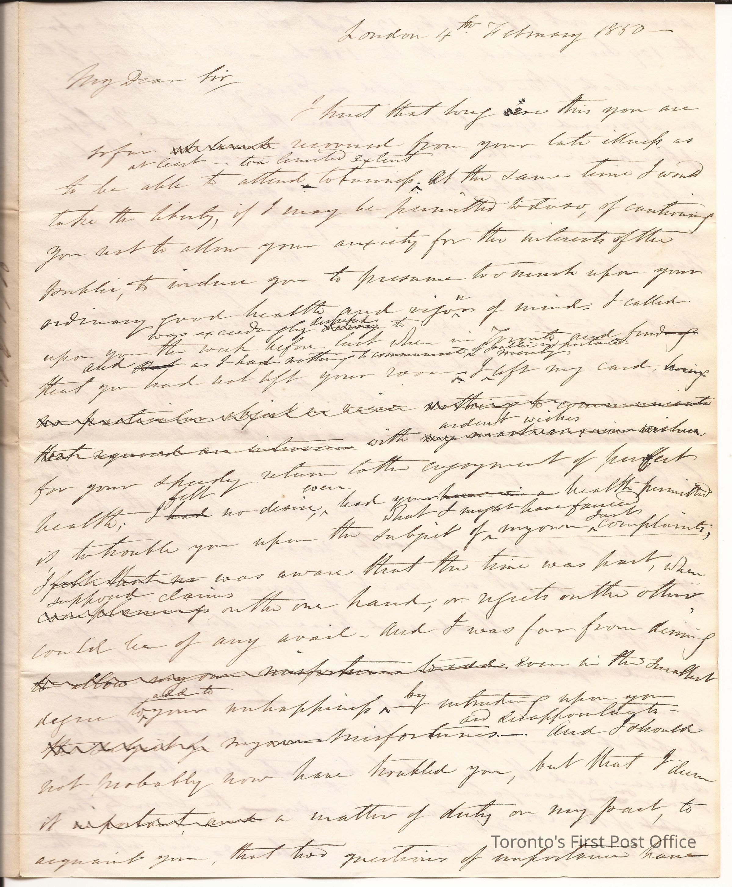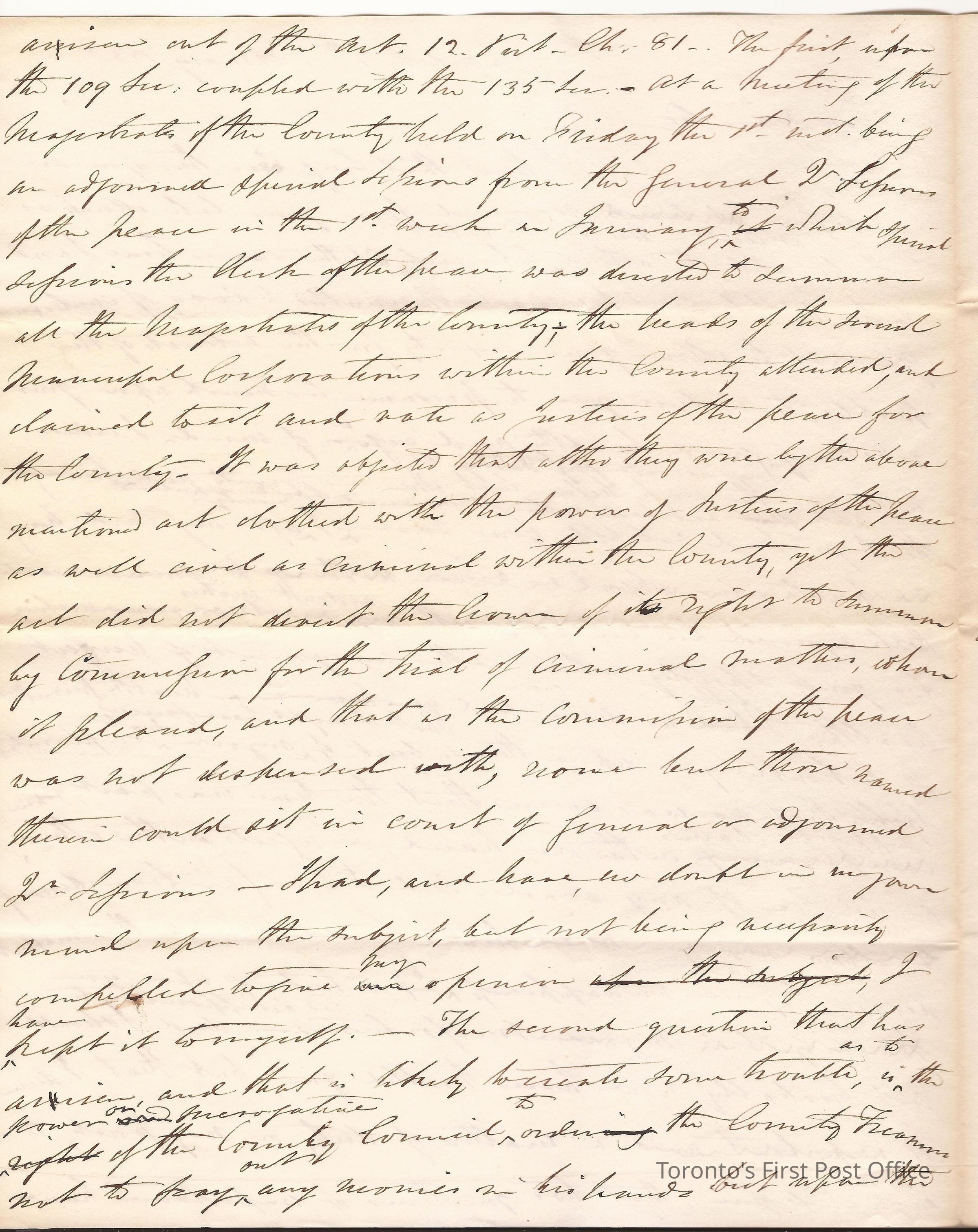 Letter; to the Honble Robt Baldwin Atty Genl; from Jas. E. Small; re: J. E. Small is unhappy about certain happenings within the judicial system, especially those concerning the role of the Justice of the Peace; edited; black ink.Dimensions