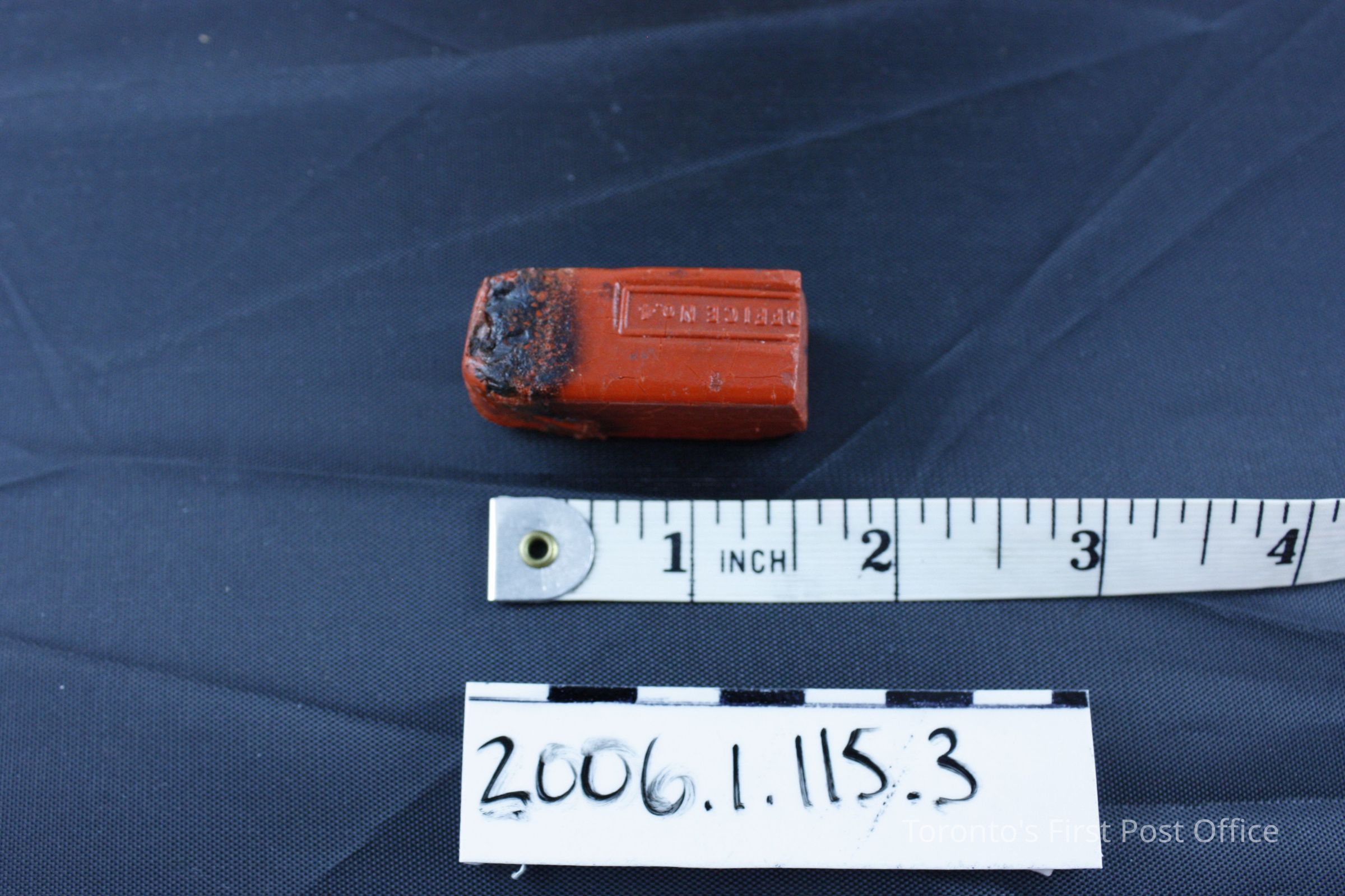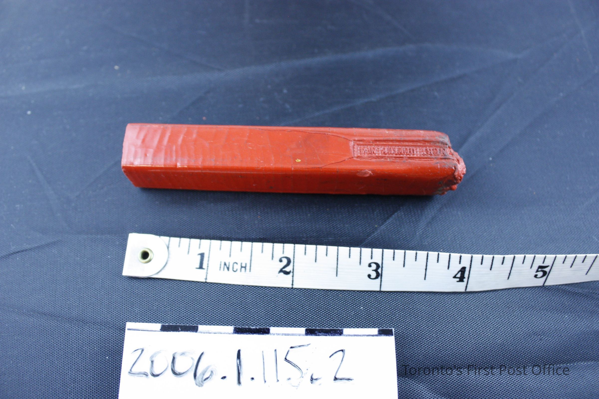 Three pieces of sealing wax; all red; all marked (or part-marked): "GOVERNMENT STATIONERY OFFICE NO. 4".Dimensions