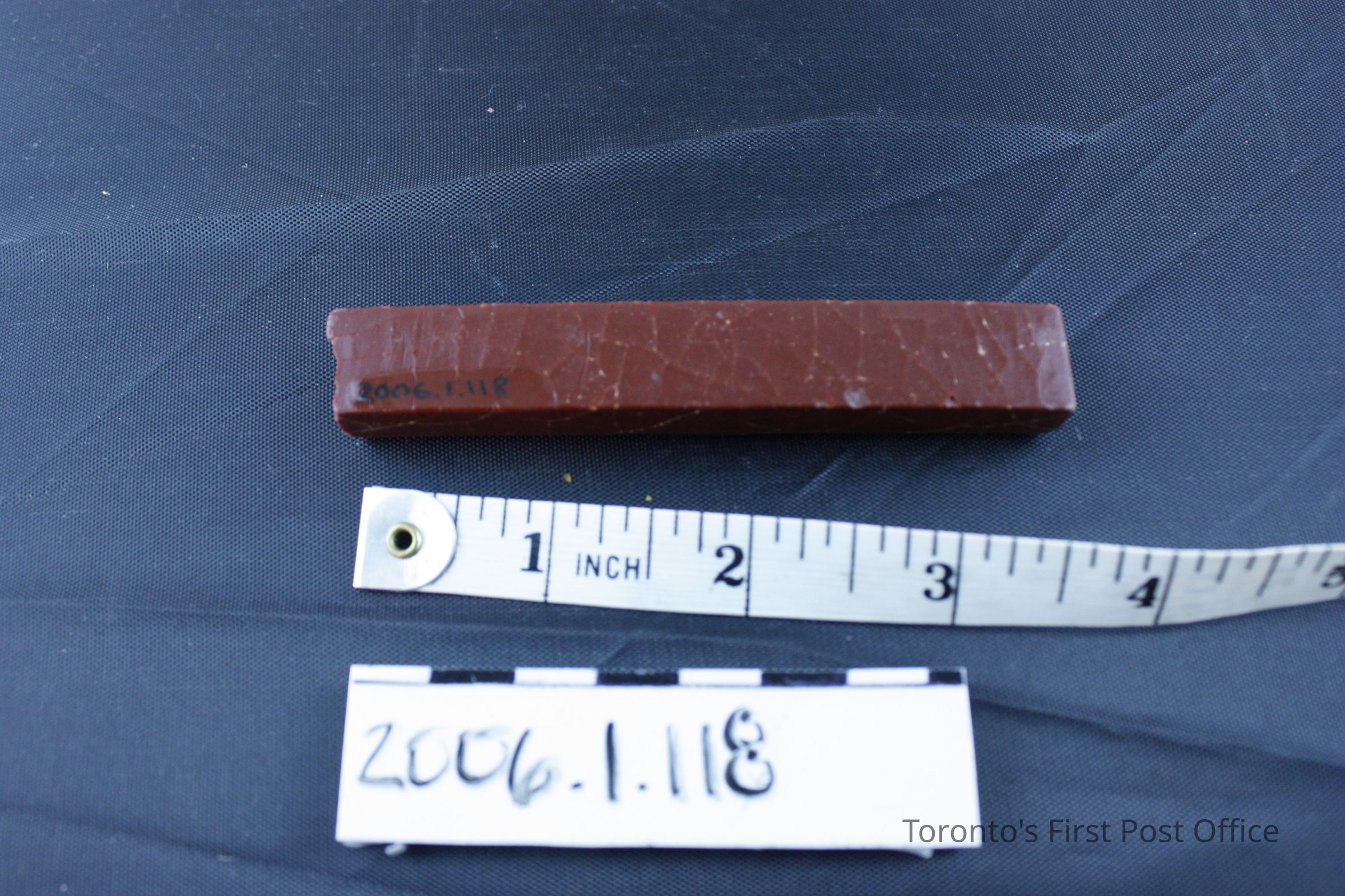 One piece sealing wax; dark red; broken off from another piece; ensignia; circa 1880.