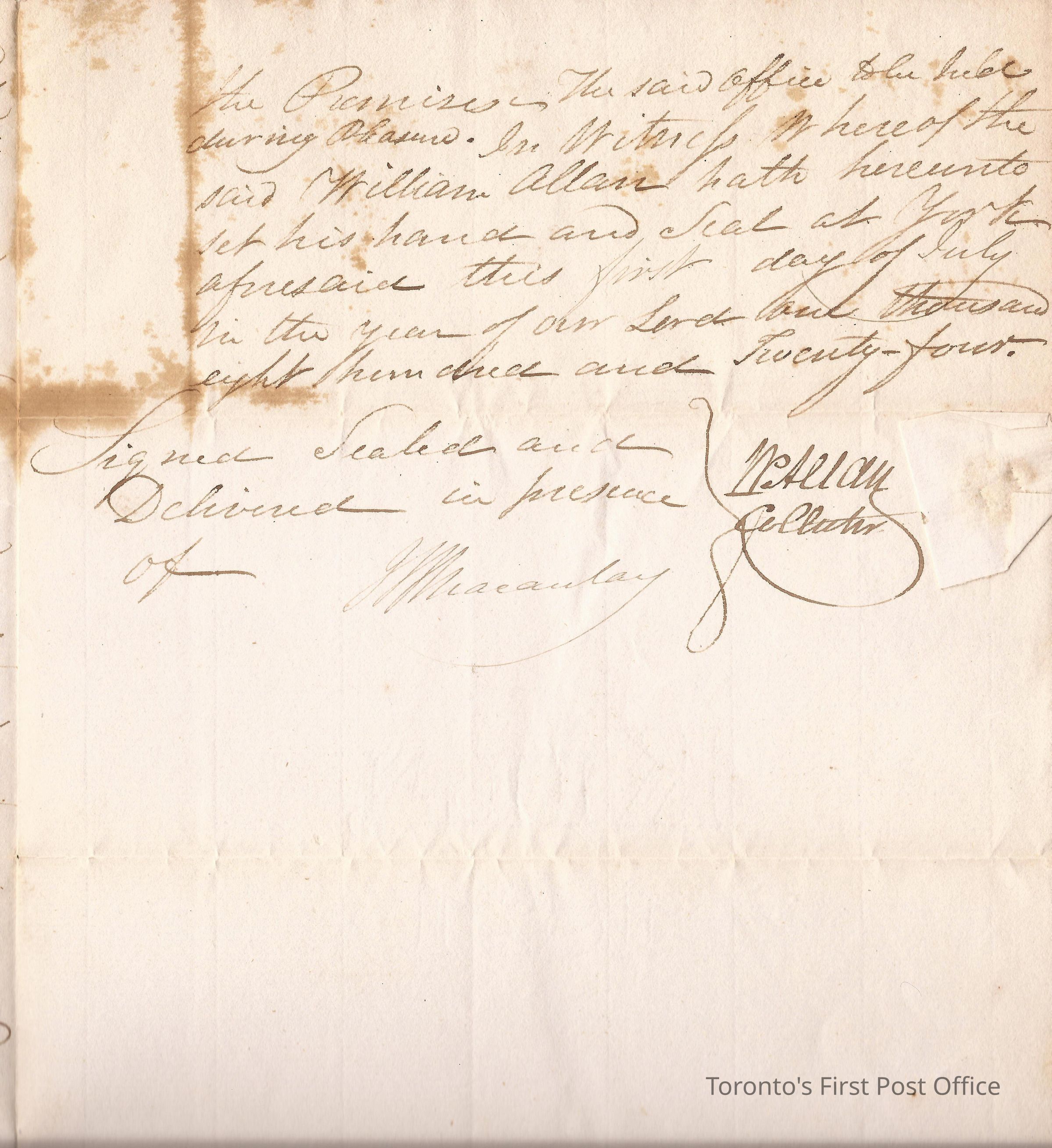 Appointment of James Scott Howard as Deputy Collector of Customs; signed by William Allan and witnessed by J Macaulay; brown ink manuscript on one sheet of double foolscap paper; 3 pp. of writing; one side labelled "W Allan to J.S. Howard Deputation as Collector"; white laid paper.Update Date