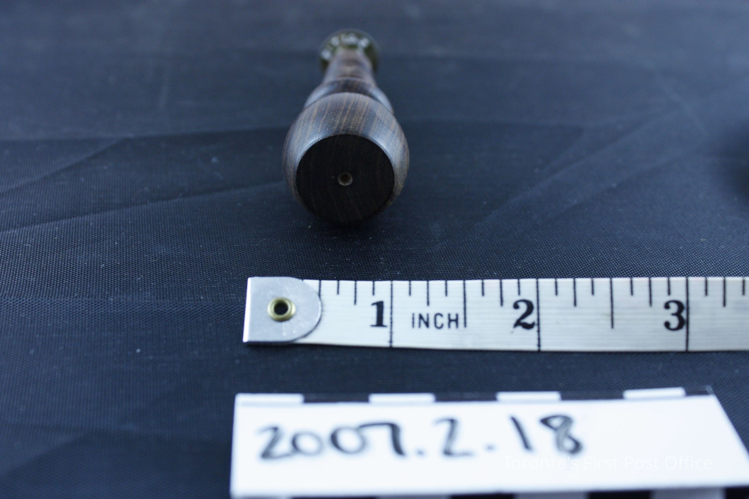 Seal with machine-turned rosewood handle; brass cross-hatched seal; c. 1890-1910.Dimensions
