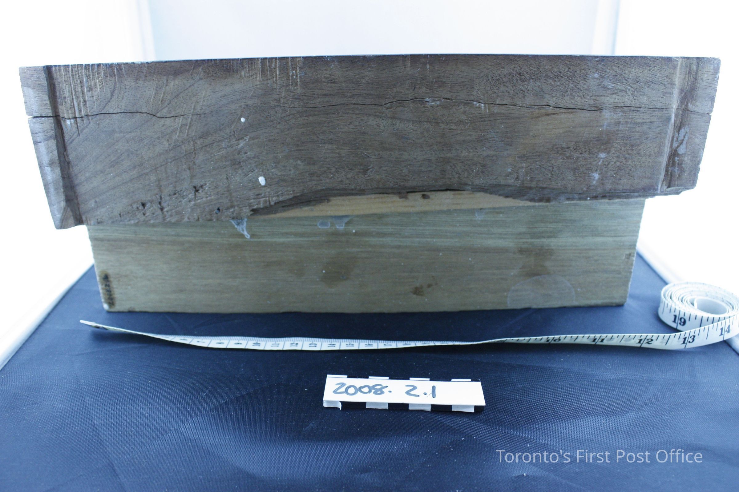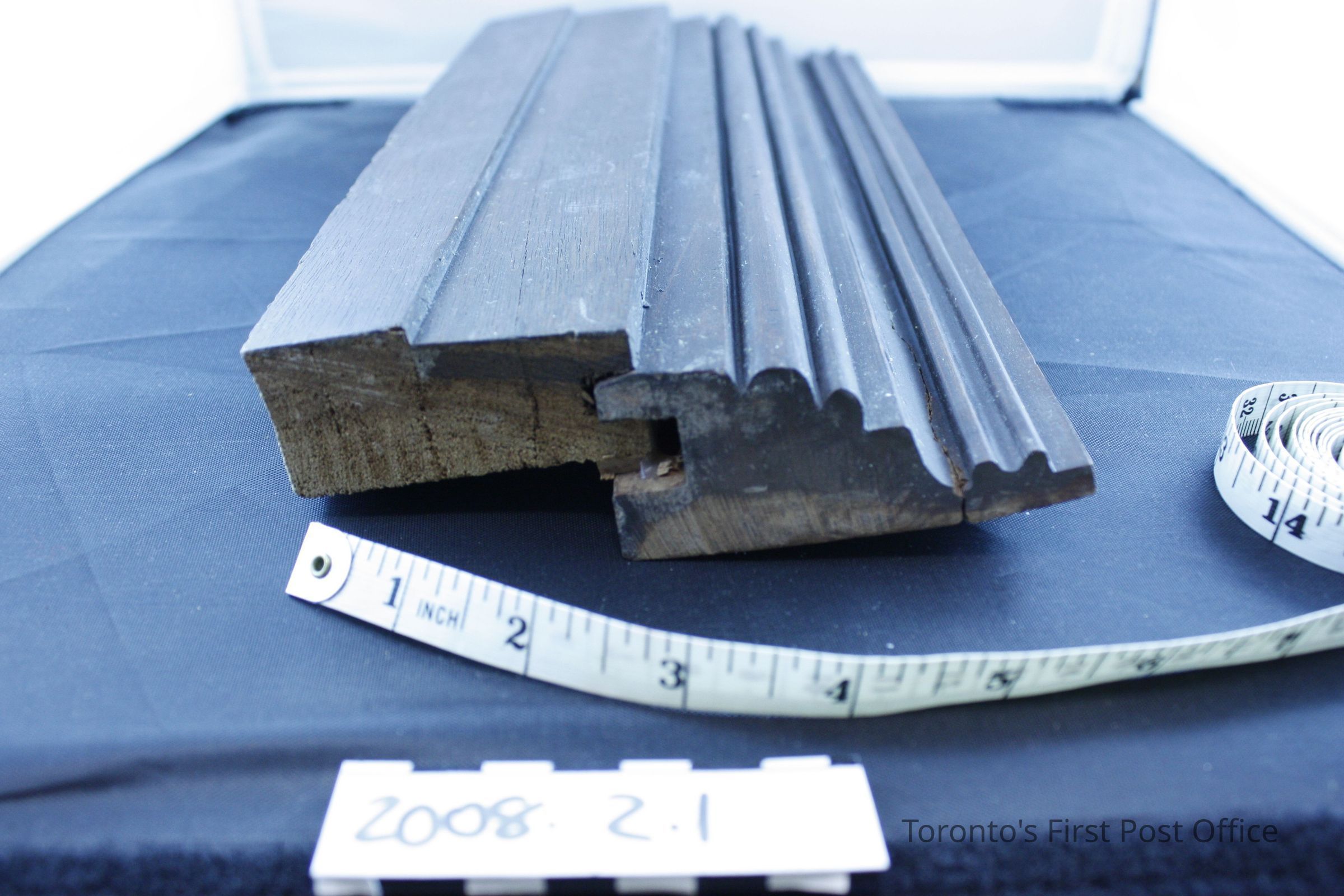Section of baseboard or trim; mahogany; made in two pieces with a third piece (pine) as wedge; one nail included, holding pieces together; c. 1827.Dimensions