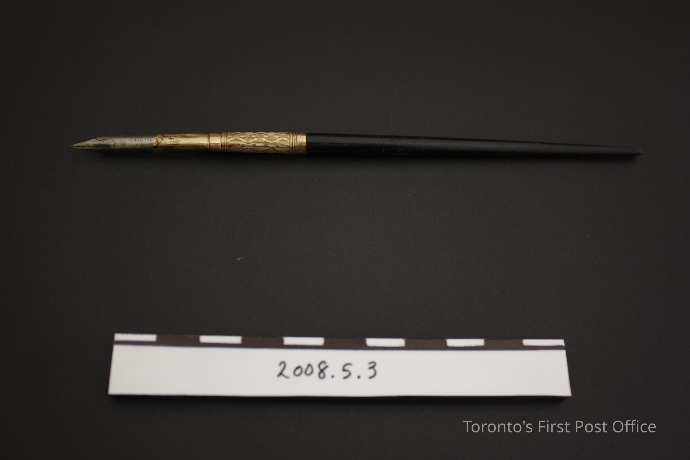 Pen with wooden shaft; painted black; gold ferrule with pattern; steel nib marked "20 C HOWARD HUNT COS CENTURY CAMDEN N.J."; ferrule marked "A.W. FABER NO 4"Update Date