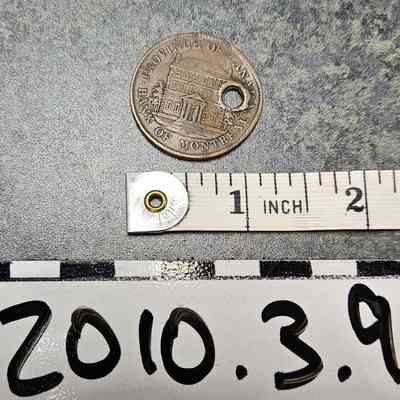 One Bank of Montreal Province of Canada Half-Penny, 1844, with punched hole.