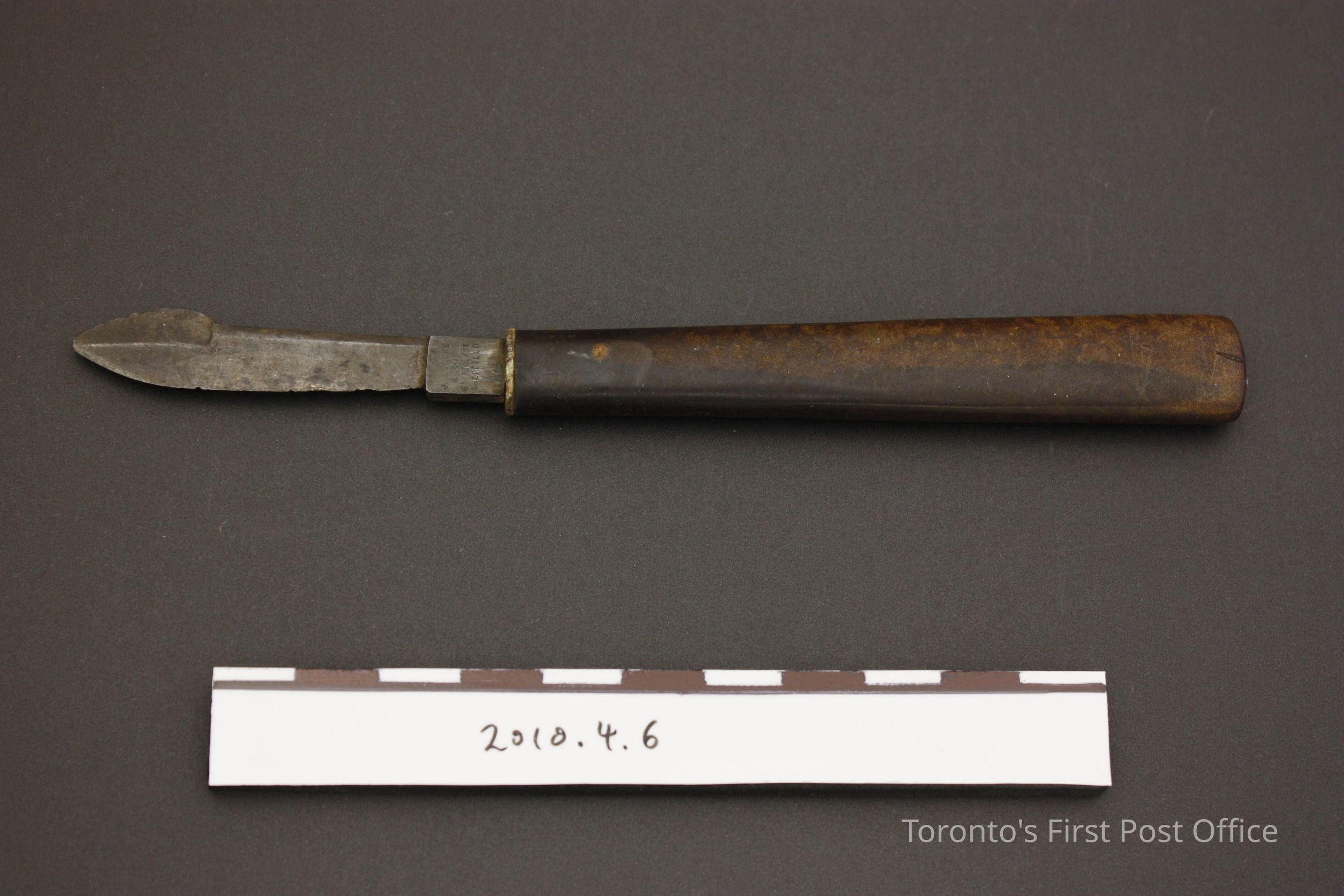 Eraser knife with rosewood handle, blade made of steel. Obverse side of the tang stamped "J. Rodgers & Sons, 6 Norfolk St., Sheffield". Reverse side of the tang stamped with a cross and star.Update Date