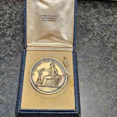 One medal in box. Obverse: portrait of Jesse Ketchum; has writing "The Public Schools of Buffalo N.Y. Jesse Ketchum 1782-1867". Reverse: portrays Liberty; has writing: "Sapiens erit Sapientor"; stamped serial number BH-44A; has engravers mark "W&C Barber F"; has designer mark "Sellstedt D.". The blue box has words "Ford N Crown Jeweler. Silversmith Buffalo, N.Y." and has a ribbon inside to help take out the medal.Update Date