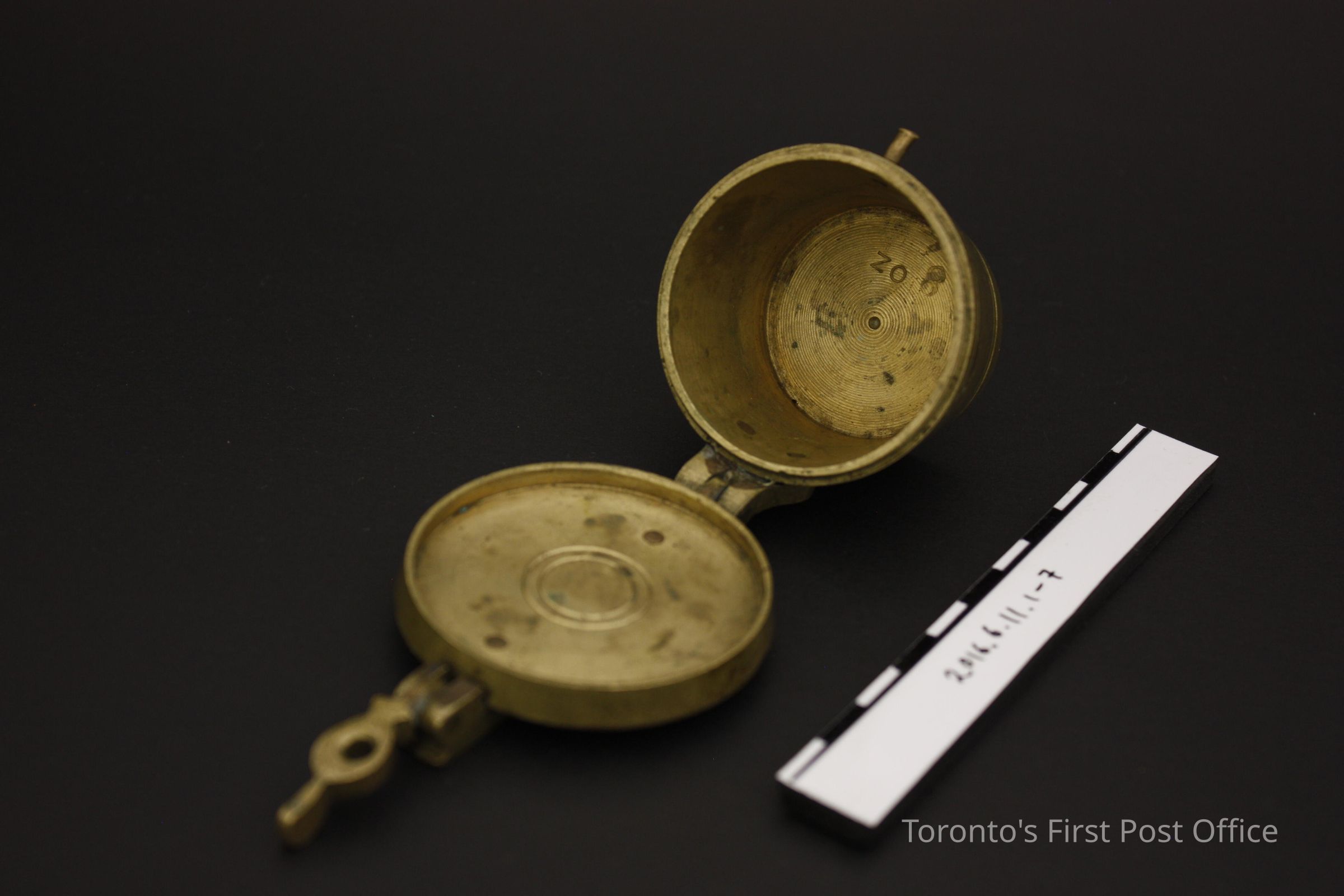 Nested Weights. Seven (7) brass nested weight, in denominations of 8 oz, 4 oz, 2 oz, 1 oz, 1/2 oz, 1/4 oz, and 1/8 oz. Missing pill (smallest/top) weight.Update Date