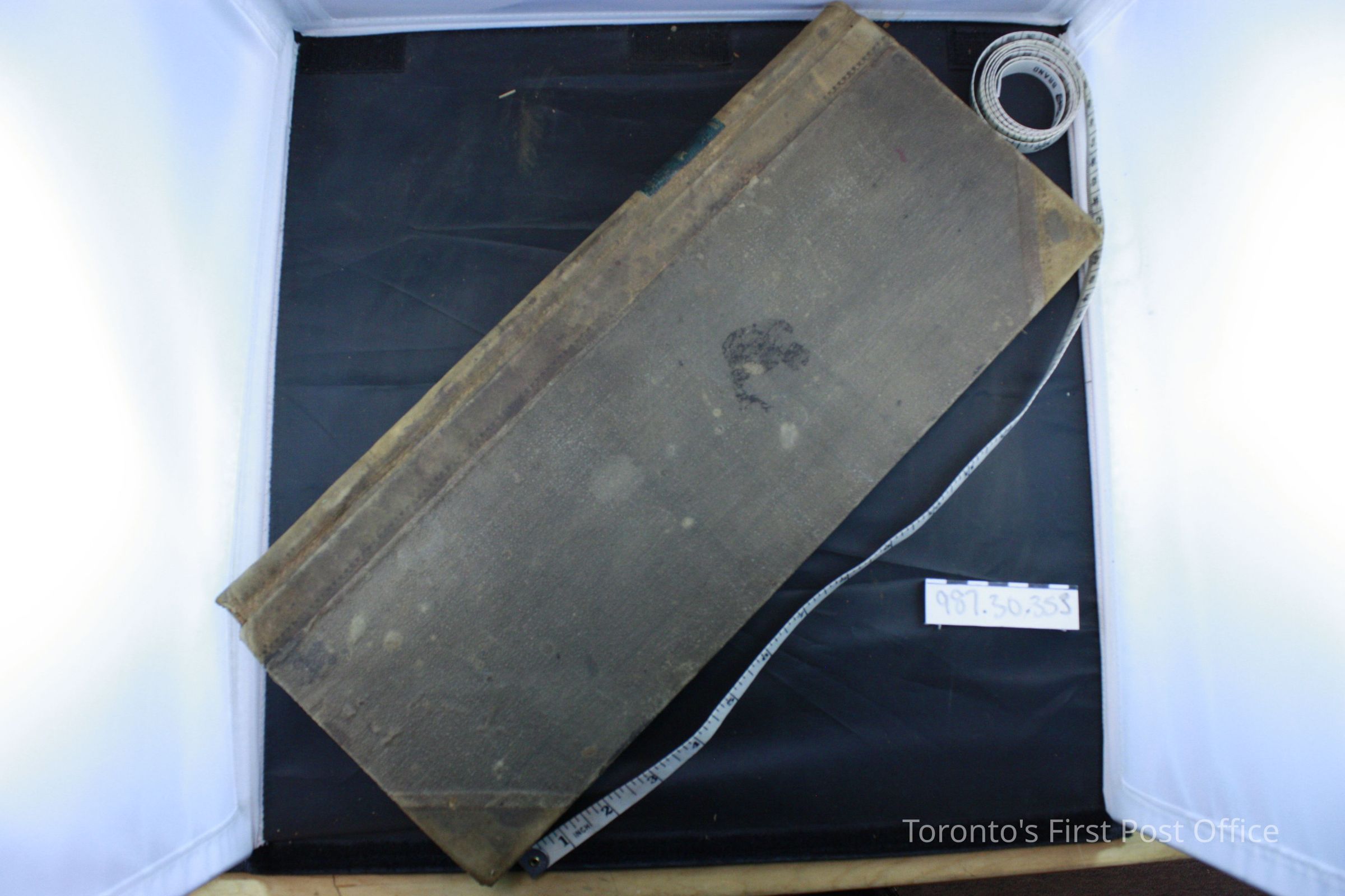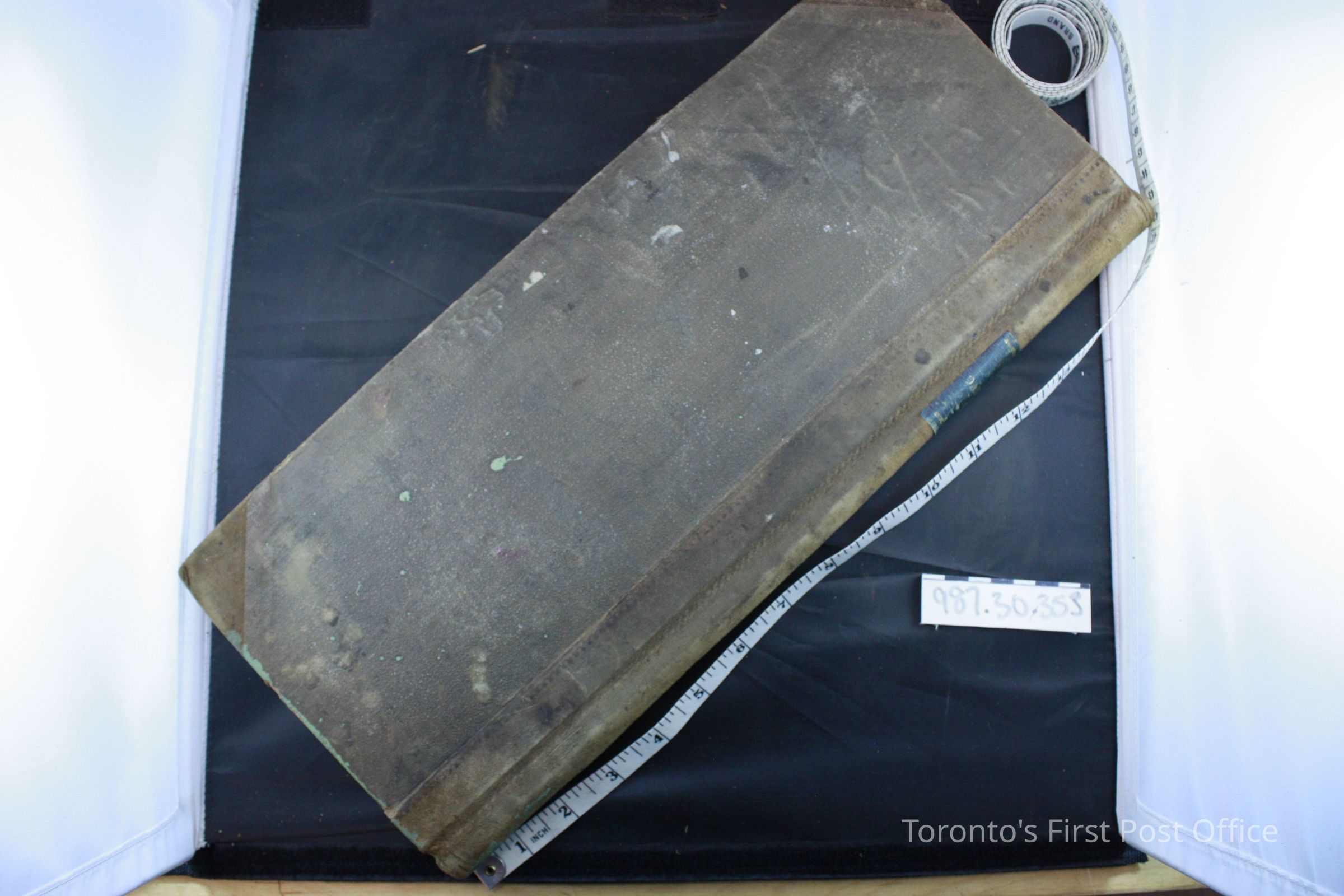Daybook; leather spine; grey-brown cover; owner "Robert Whealey, Bracebridge; contents: three columns: date, name, account; circa 1889-1891.