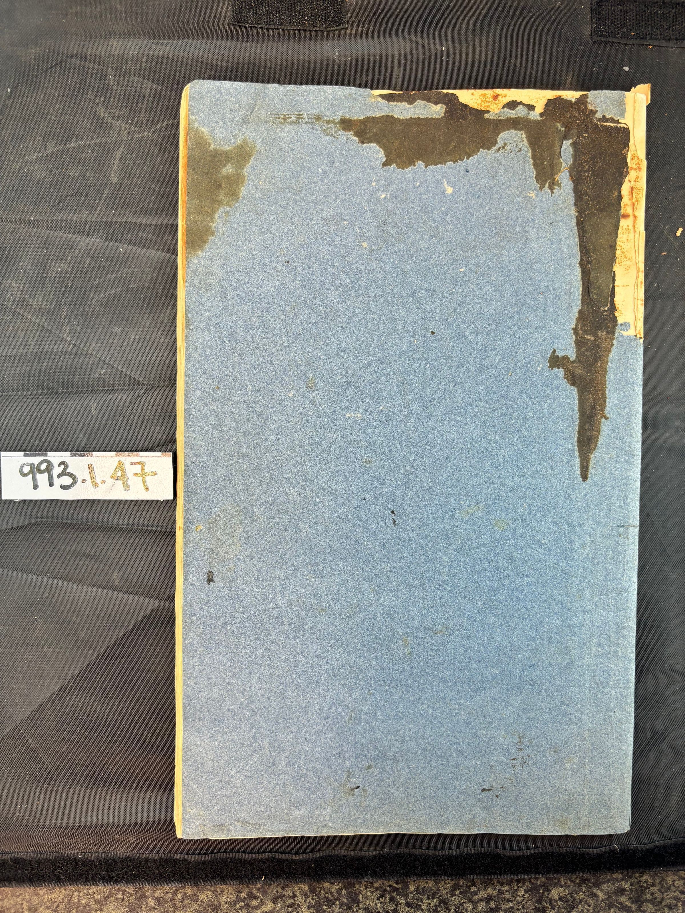 Student's book; blue construction paper cover; unlined and unbleached paper; black ink faded to brown; 56 pp.; "Robert Rose Manchester 1831"; re: math problems; cotton thread binding.Update Date