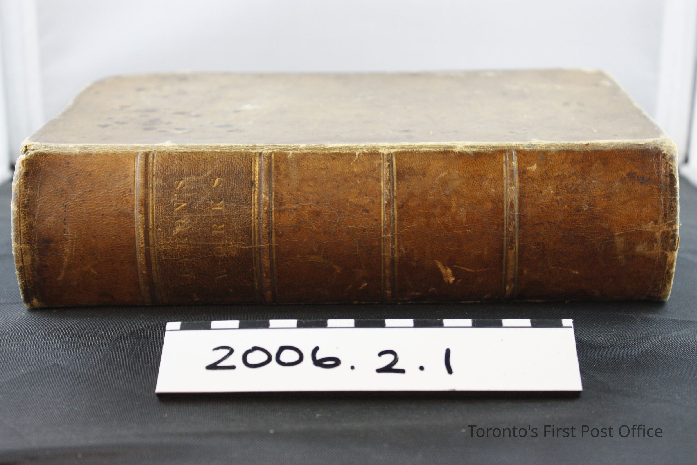 Book; "The Works of Lord Byron, In Verse and Prose, Including His Letters, Journals, Etc. With a Sketch of His Life"; New York, George Dearborn, Publisher; 1836; collected and arranged by Fitz Green Halleck, Esq.; 627 pp.; inscribed in brown manuscript "B.O. Williams Book Bought in N.Y. January (?) 4th 1835" and in pencil manuscript "Sabbath Day Nov 12th 1893 G.N."; leather-bound in light brown; "Byron's Works" in gold on spine; green marbled page edges.Update Date