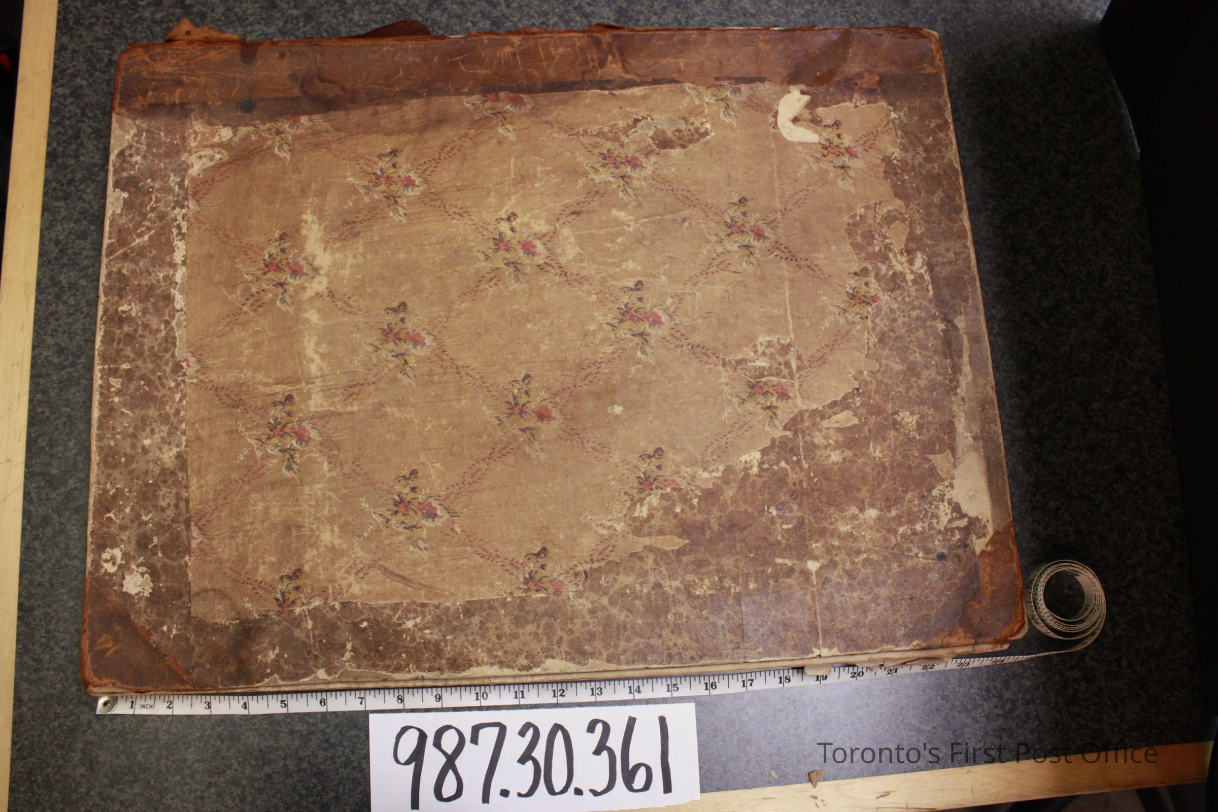 Book; "Buffalo Bulletin"; devoted to the interests of agriculture, commerce, manufacturers; and the rights of the working man; cardboard cover is mid-brown and garlands of pink roses; a collection of newspapers, each a broadsheet and folded in half; circa 1834, 1835.Update Date