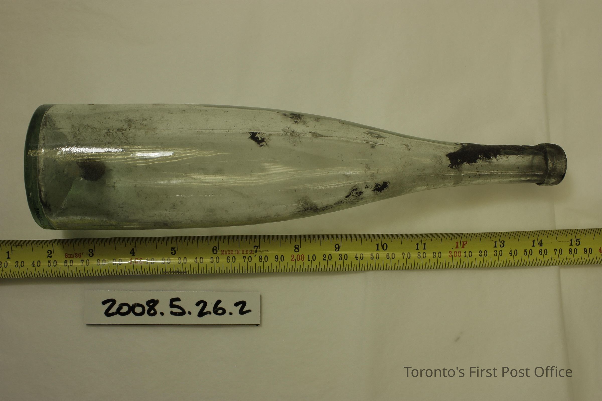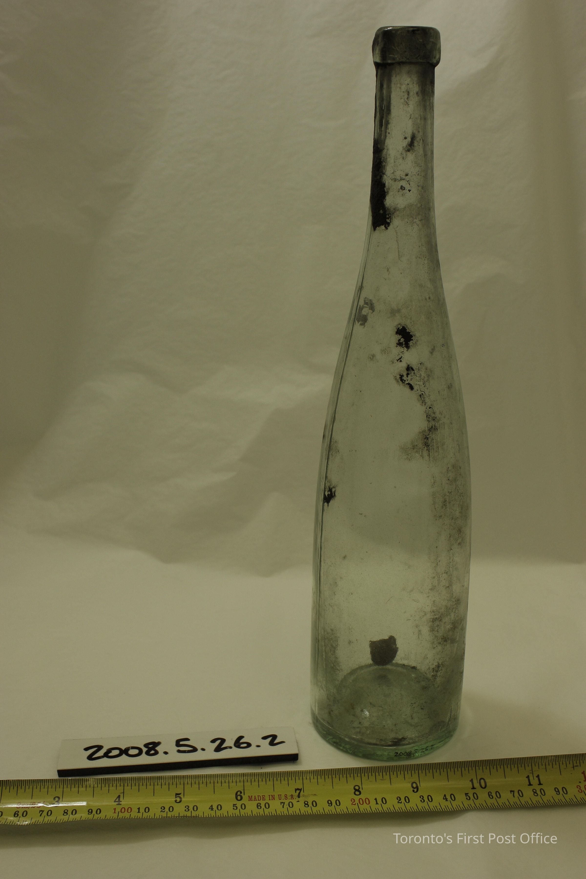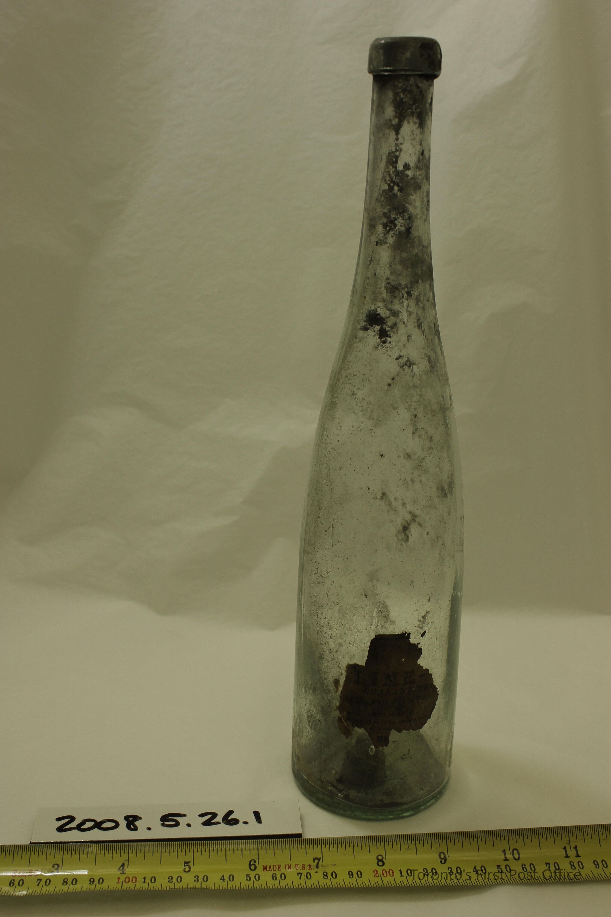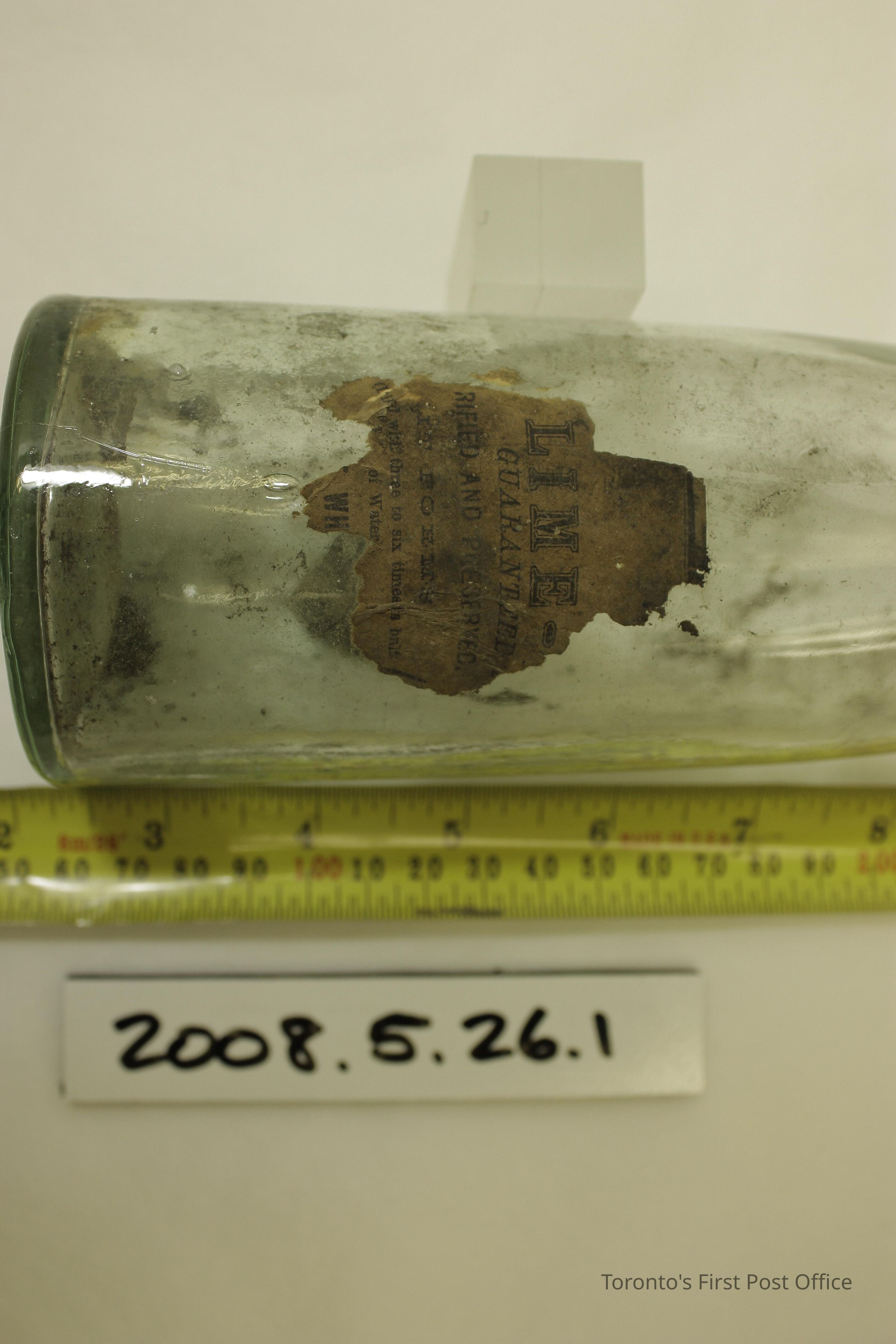 Two bottles; clear glass; 2 piece mould; embossed on bottom: "EVANS SONS & CO L-POOL"; .1 also embossed on bottom "710"; .2 also embossed on bottom "870"; label on .2 (partial): "LIME GUARENTEED… RIFIED AND PRESERVED… IT FORMS… and with three to six times its bulk... of Water... WH".Dimensions