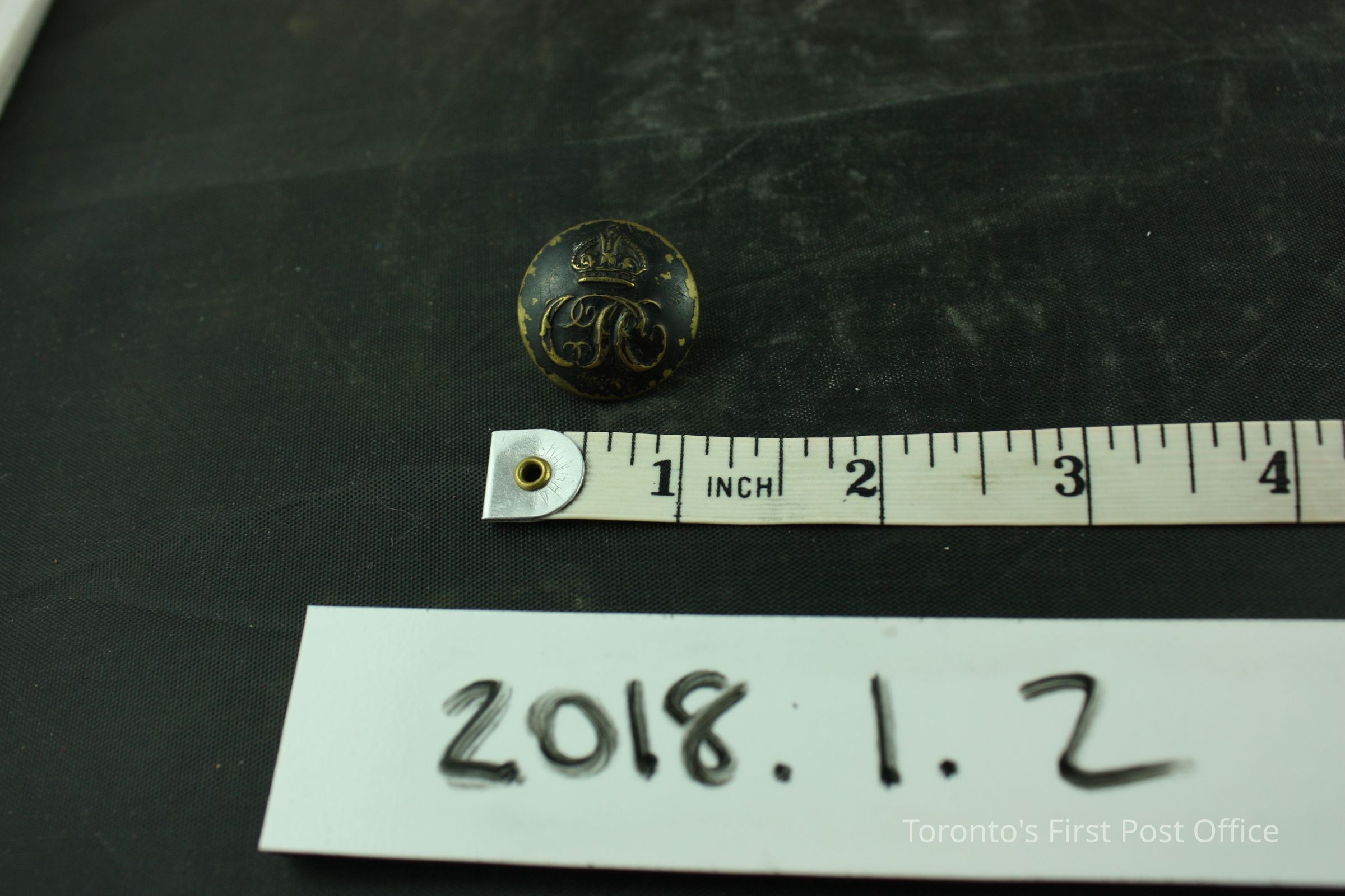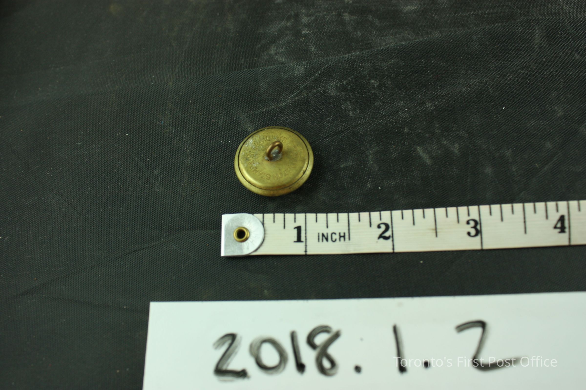 Brass Canadian Postal Office letter carrier's button. On obverse side, marked "CPO" and a crown on top. On reverse side, stamped "Hamilton Stamp & Stencil Wks Ltd." and includes a clip.Update Date